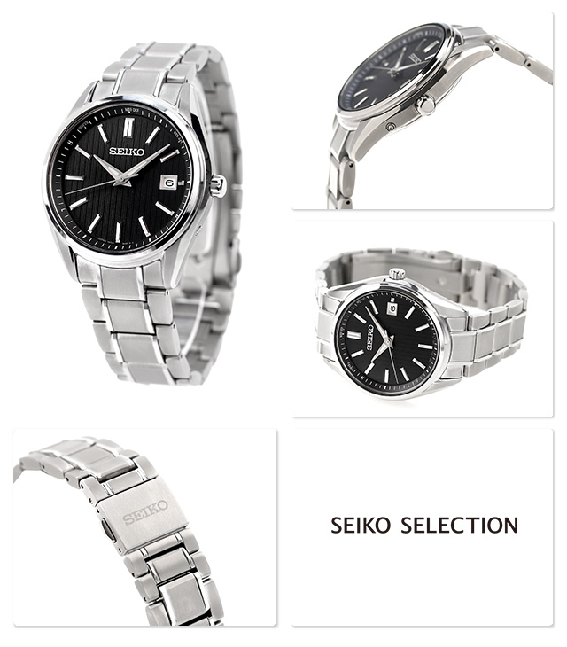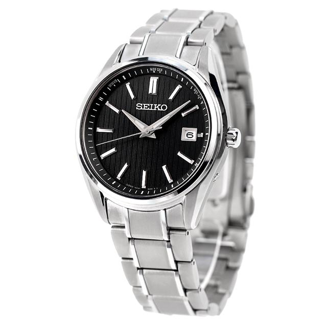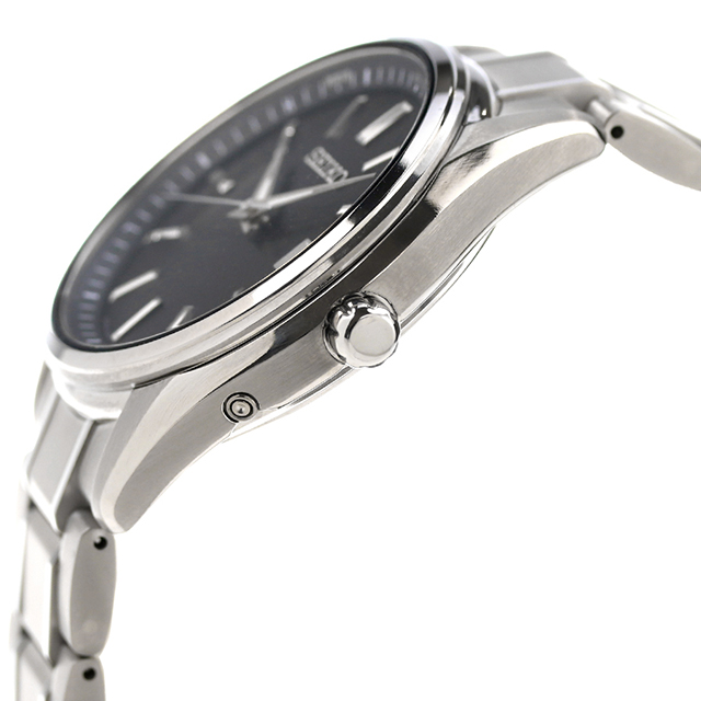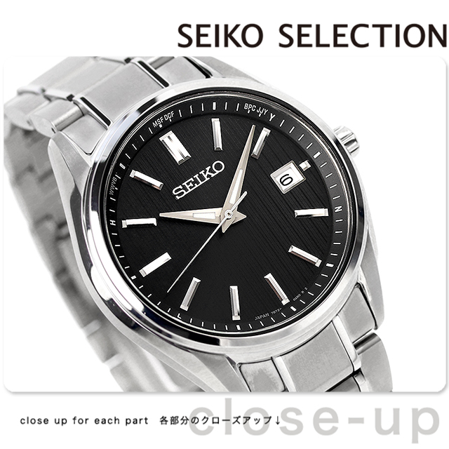 正規品 7年保証キャンペーン 送料無料 セイコーセレクション Sシリーズ チタン製 ソーラー電波 プレミアム 流通限定モデル チタン 日本製 電波ソーラー メンズ 腕時計 SBTM341 SEIKO SELECTION アナログ ブラック 黒 ◆上質な立体感あるバンドに象徴される、プレミアムなチタン製ソーラー電波時計が登場。胴横からかん先へとつながる美しい鏡面をもつケースは、鏡面仕上にした内斜面からきらめく光の輝きにより、上質な印象を与えます。中駒に鏡面のラインをもつ、5列構成のバンドは、洗練された美しい輝きを持たせるだけではなく、中留を無垢にすることで、装着感を向上させました。抑揚をつけたストライプパターンのダイヤルと、斜面カットで立体感をもたせたインデックスにより、高級感を強調しました。針、インデックスにはルミブライトをつけることで、夜間も含めた視認性も確保しています。 発売日:2023年5月発売