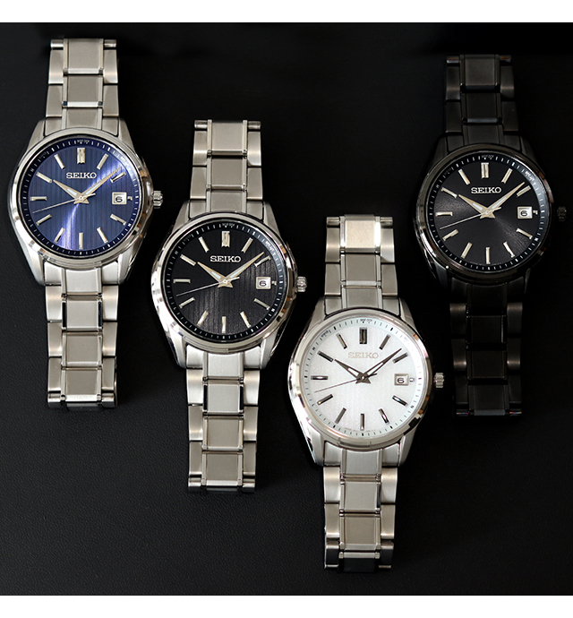 正規品 7年保証キャンペーン 送料無料 セイコーセレクション Sシリーズ チタン製 ソーラー電波 プレミアム 流通限定モデル チタン 日本製 電波ソーラー メンズ 腕時計 SEIKO SELECTION アナログ 黒 選べるモデル ◆上質な立体感あるバンドに象徴される、プレミアムなチタン製ソーラー電波時計が登場。胴横からかん先へとつながる美しい鏡面をもつケースは、鏡面仕上にした内斜面からきらめく光の輝きにより、上質な印象を与えます。中駒に鏡面のラインをもつ、5列構成のバンドは、洗練された美しい輝きを持たせるだけではなく、中留を無垢にすることで、装着感を向上させました。抑揚をつけたストライプパターンのダイヤルと、斜面カットで立体感をもたせたインデックスにより、高級感を強調しました。針、インデックスにはルミブライトをつけることで、夜間も含めた視認性も確保しています。 発売日:2023年5月発売 SBTM341 SBTM337 SBTM339 SBTM343