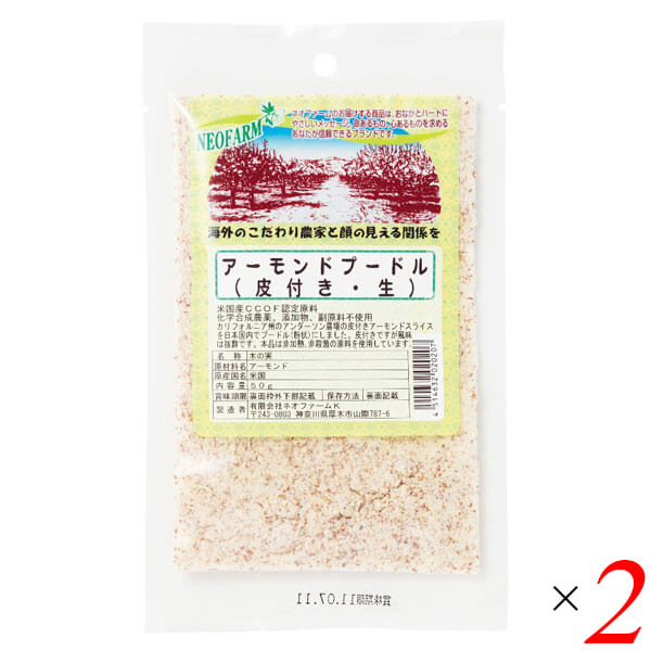 アーモンドプードル(皮つき・生)50g 2個セット ネオファーム 粉末 無添加 皮付き 送料無料