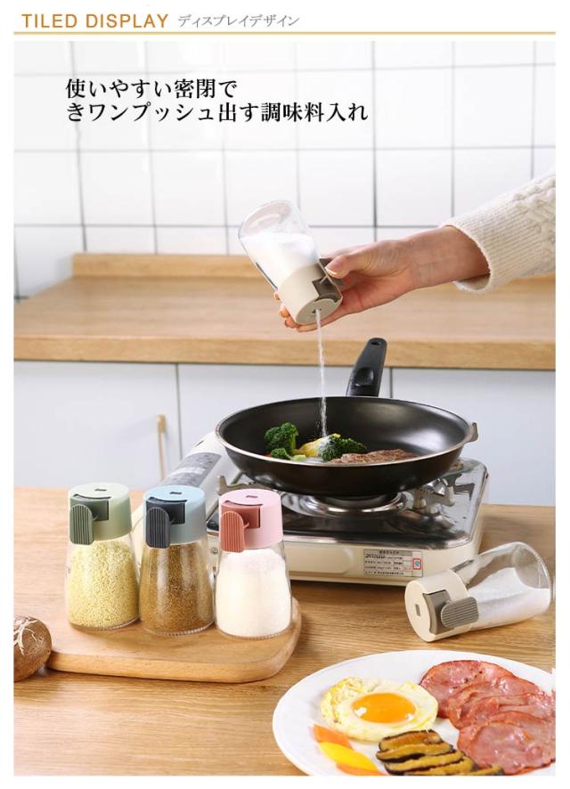 4個セット 使いやすい密閉ワンプッシュ 調味料入れ 調味料ポット 180ml ソルトコントロール 片手 自動計量機能付き 減塩 使いやすい 砂糖 塩入れ 調味料ケース 保存容器 容器 密閉保存容器 密閉ポット 収納 父の日ギフト 母の日 プレゼント 新生活