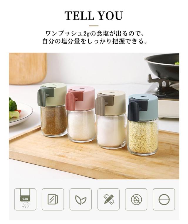 | 自動計量機能付き ワンプッシュタイプ 0.5g/回 使いやすい密閉できワンプッシュ出す調味料入れ ワンプッシュ2gの食塩が出るので、自分の塩分量をしっかり把握できる ワンプッシュで定量の調味料を出せますので、作業がとってもスムーズ 高級感と透明感を追求した素材感、気配りのあるディテールが人気 体に優しいガラス・PP素材を採用するので、安心してご使用 開口部が広く、調味料の補充がラクラク♪ しっかり閉まって中の調味料が固まりにくい | |