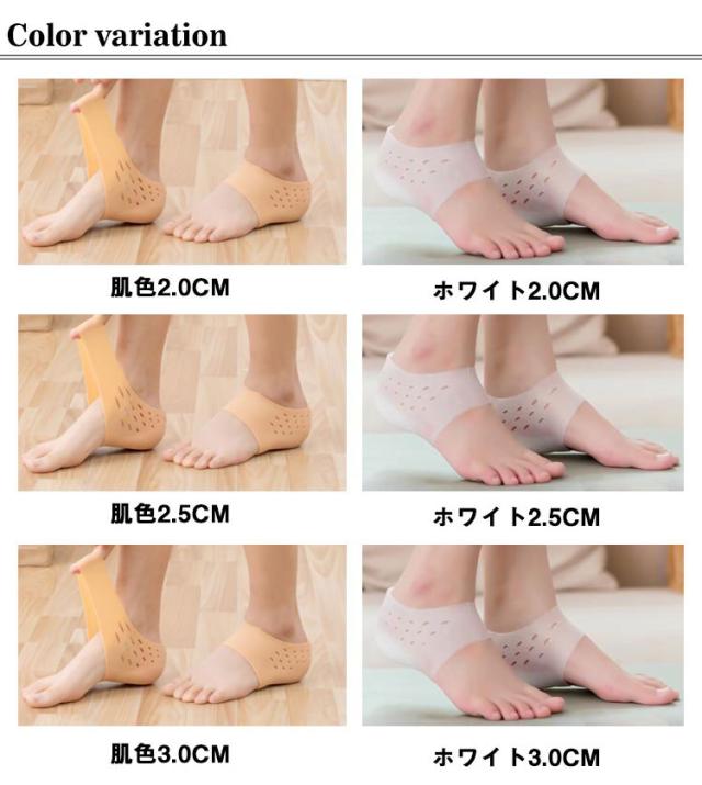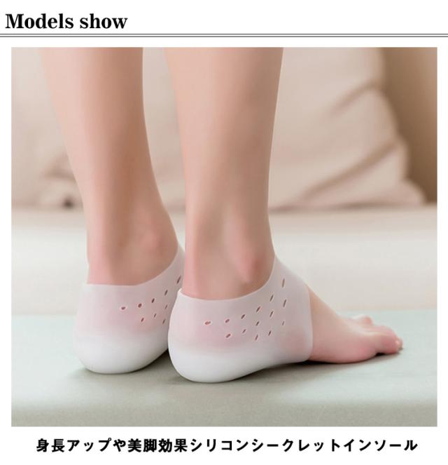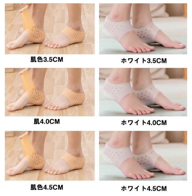 1足セット シークレットインソール シリコン ホワイト 肌色 2cm 2.5cm 3cm 3.5cm 4cm 4.5cm 5cm 5.5cm 6cm 身長up 男女兼用 シリコン 滑りにくい かかとカバー 靴下で隠せる バレない 脚長効果 衝撃吸収 インソール 疲労軽減 クッションパッド