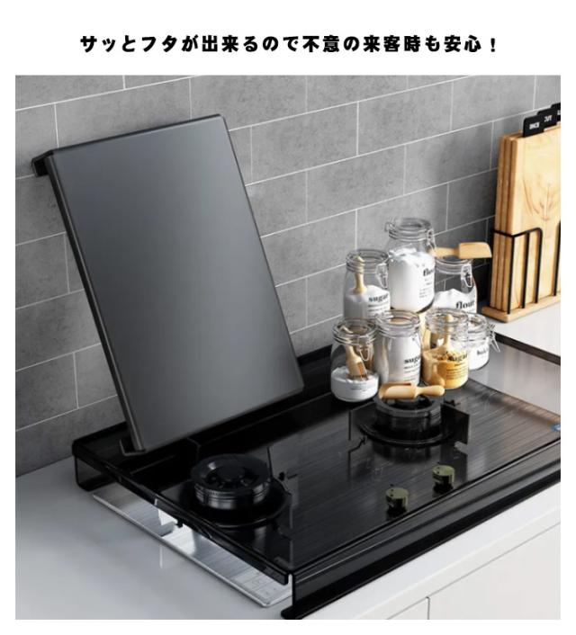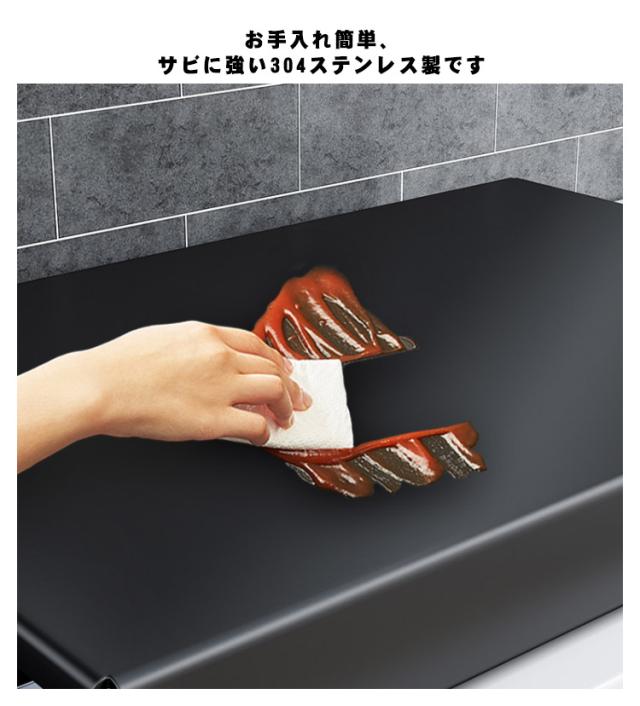 | ガスコンロの上が収納・作業スペースに早変わり!組立いらずで着いたらすぐに使えます コンロを使わない時は調理スペース、使用時は油ハネガードになります。 サッとフタが出来るので不意の来客時も安心! 取り付けも簡単で、カバーは外して洗えます。 ガスコンロにもIHクッキングヒーターにもご使用いただけます。 お手入れ簡単、サビに強い304ステンレス製です | |