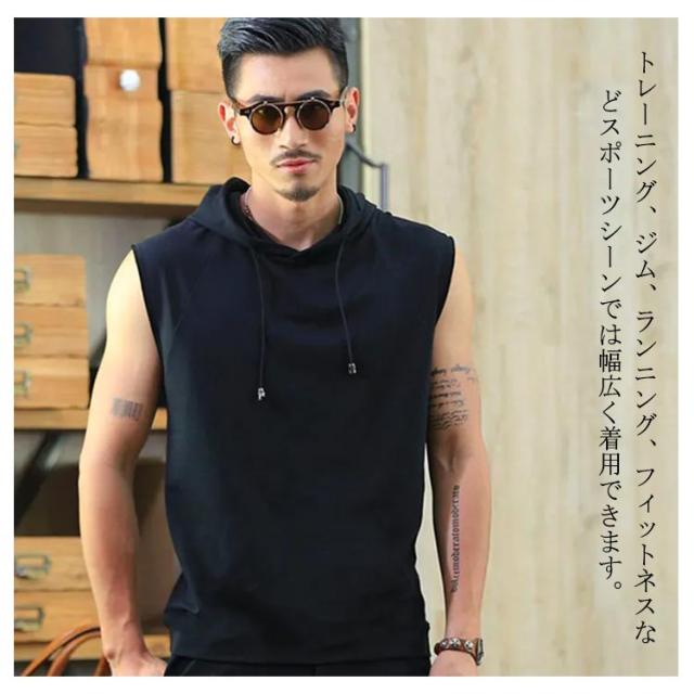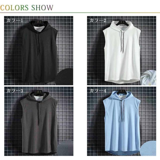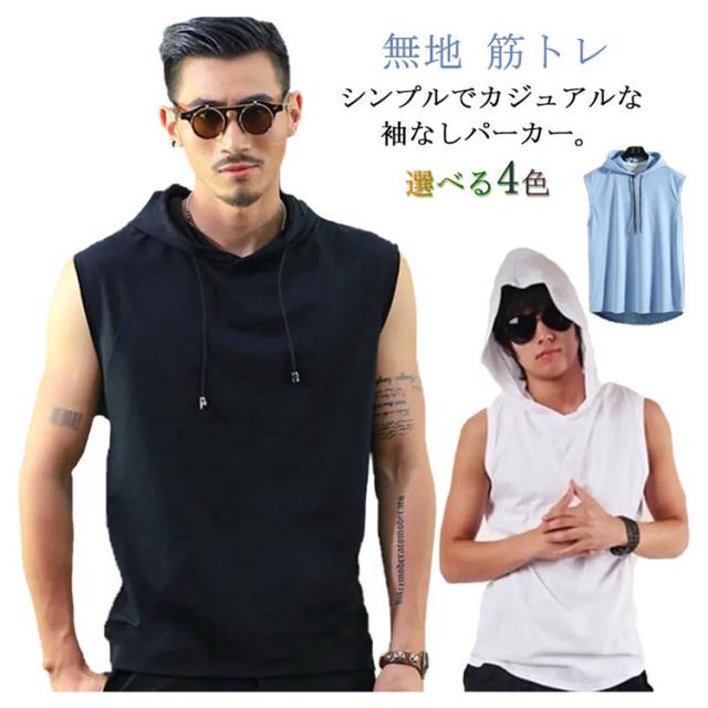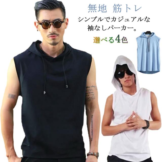 袖なし パーカー メンズ ノースリーブ 夏 トップス フード付き スウェット トレーニングウェア ベスト プルオーバー フィットネス 無地 筋トレ 無地 大きいサイズ スポーツウェア カジュアル M L XL 2XL 3XL
