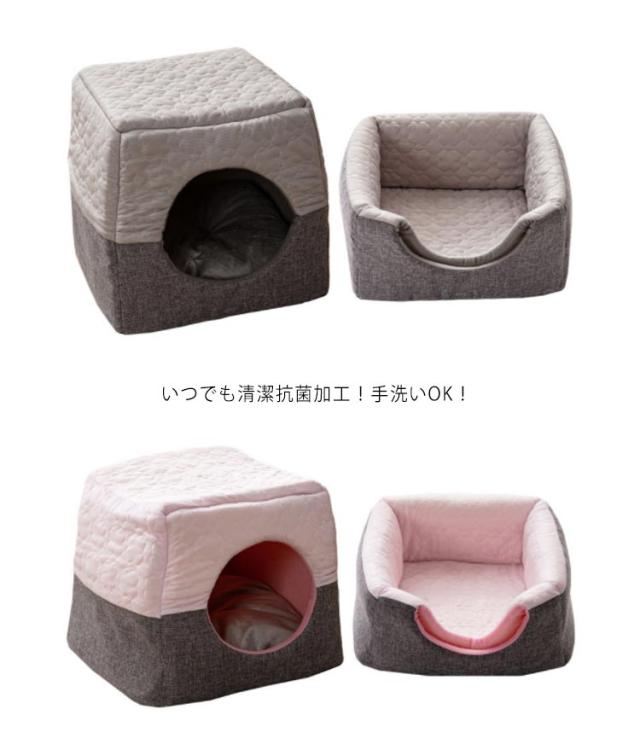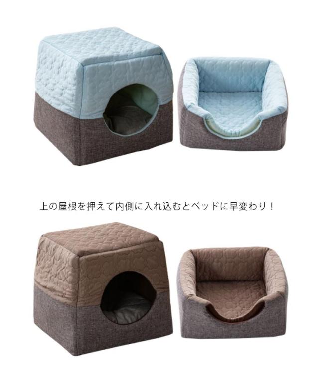 猫 ハウス 2WAY ペットベッド 猫 犬 ペットクッション キルティング ペットハウス 犬猫兼用 猫ベッド 犬ベッド スクエア型 ドーム型 ハウス クッション付き おしゃれ リネン調 冷感 ベッド 保温性 洗える 滑り止め いぬ イヌ ねこ ネコ 猫 小型犬 中型犬 可愛い 春夏秋冬