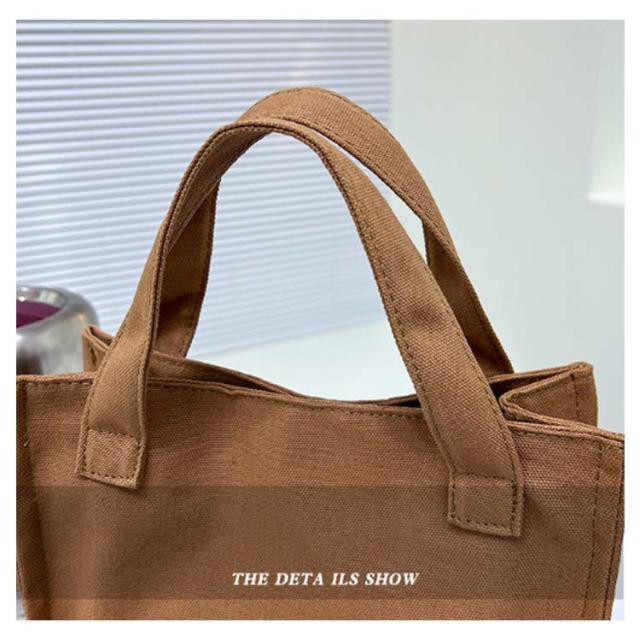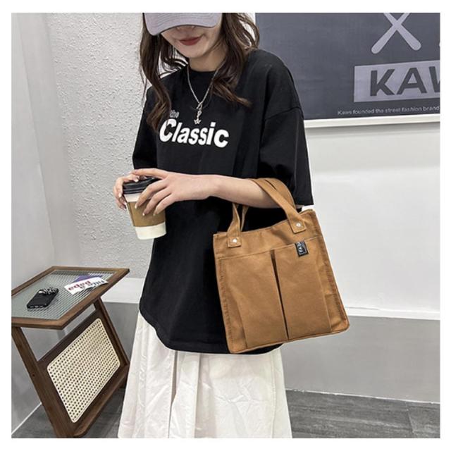 | 小さくて便利な、キャンバス素材のミニトートバッグ。 フロントには折りたたみ傘やペットボトルなどを収納するのに便利なオープンポケット付属。 内側にもファスナーポケットが1つ付いており、小物の整理にもオススメ。 さらにメインの収納スペースは仕切りなどが無く、広くご使用いただけるのも使いやすいポイントです。 開口部はマグネット式で、中身が見えないです。 型崩れしにくい厚めのキャンバス生地に加え、持ち手部分はさらに安定感のある厚めの生地を重ねて持ちやすく仕上げました。 必要な物をサッと取り出しでき、お散歩にもぴったり。 ちょっとしたお出かけ、お散歩、通勤・通学の際のサブバッグやランチトートにも、サッと持てる手軽さが魅力です。 | |