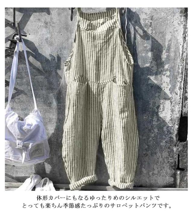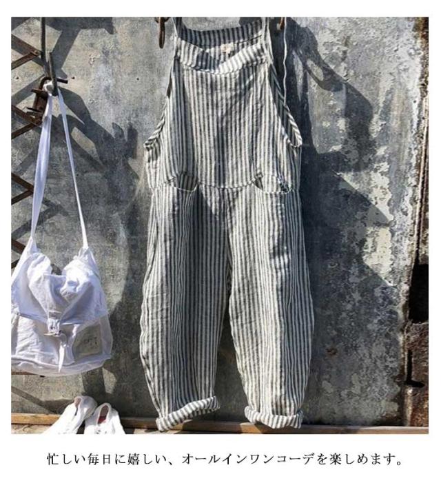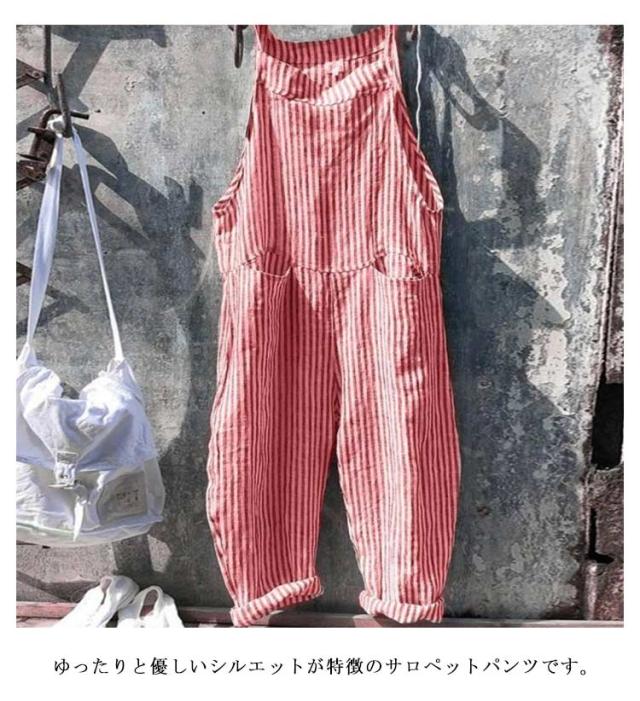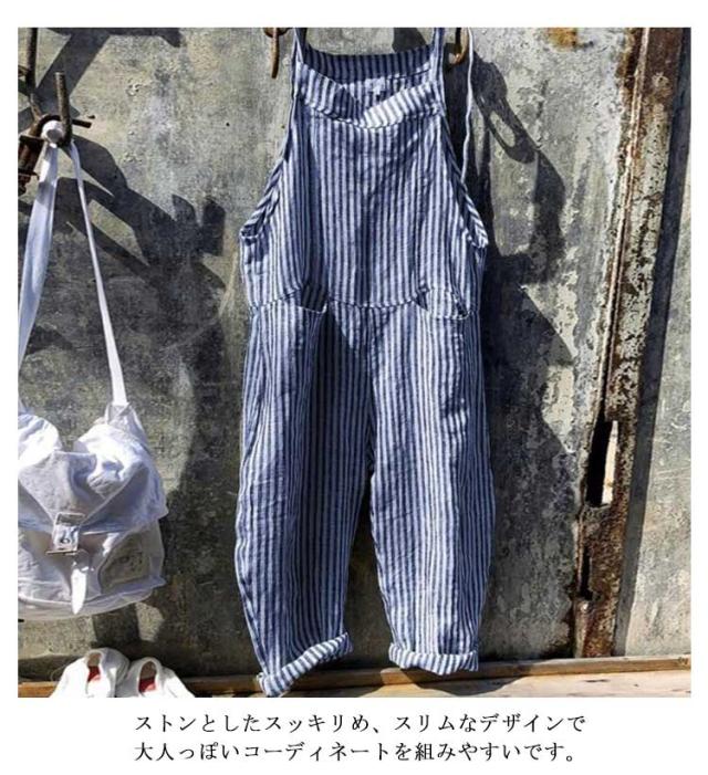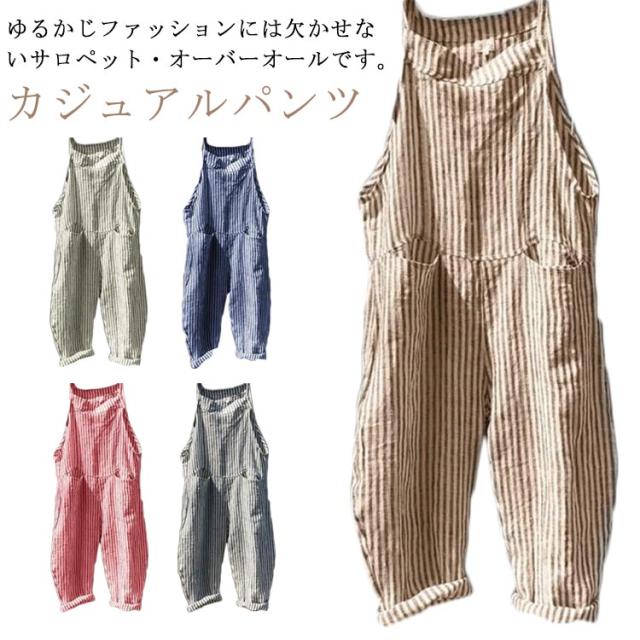サロペット オールインワン ストライプ オーバーオール レディース ワイドパンツ ロング丈 九分丈 ゆったり シンプル ノースリーブ かわいい 美脚 対応 春 夏 秋 通勤 通学 体型カバー 可愛い 大きいサイズ カジュアル 通勤 通学 おしゃれ シンプル 送料無料