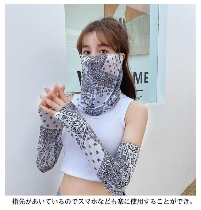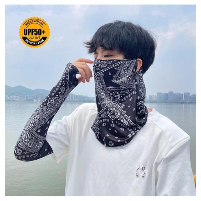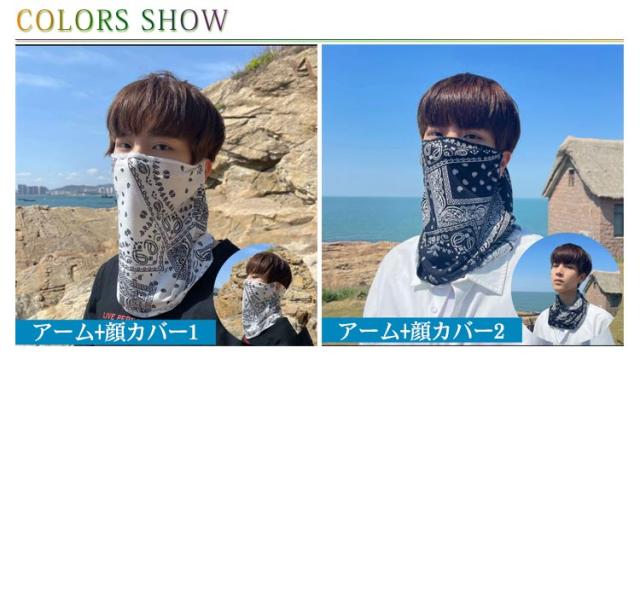 アームカバー+フェイスカバーの2点セット!アームカバー UVカット 冷感 接触冷感 アイスシルク ペイズリー柄 伸縮性 通気性 涼しい おしゃれ 腕カバー ゴルフ スポーツ uv 紫外線 日焼け対策 メンズ レディース 通勤 通学