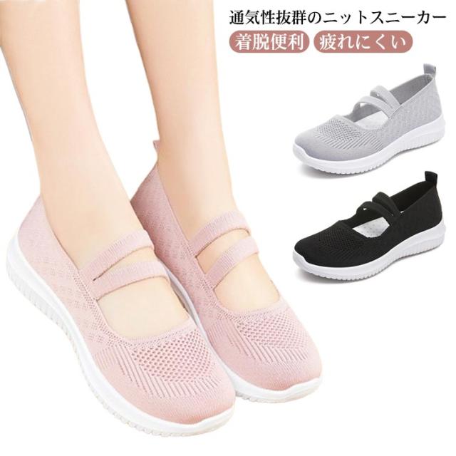 スニーカー スリッポン レディース ニットスニーカー ウォーキング シューズ スポーツ 軽量 軽い メッシュ 通気 おしゃれ かわいい クッションソール 通気性 着脱便利 快適 疲れにくい 滑りにくい オールシーズン 運動靴 母の日 プレゼント