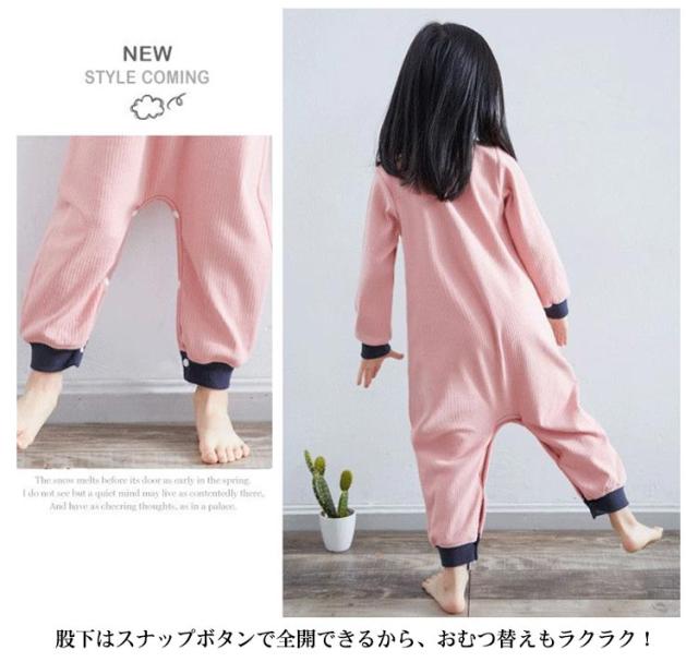 | 3色×8サイズ! お腹が冷えず着せやすいつなぎタイプの子供パジャマ 肌触り優しい綿生地で、通気性・吸汗性も抜群、大切なお子様により快適な快眠を◎ 股下はスナップボタンで全開できるから、おむつ替えもラクラク! ゆったりとしたサイズ感ので、日中の部屋着としても活躍してくれそうですね。 | |