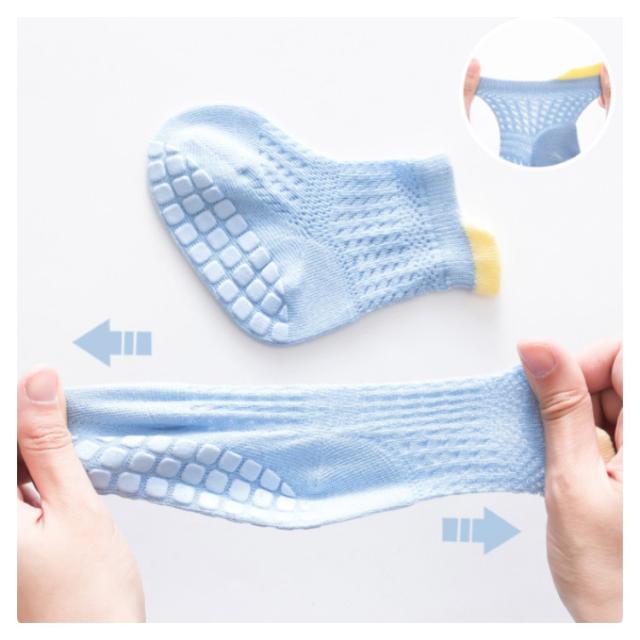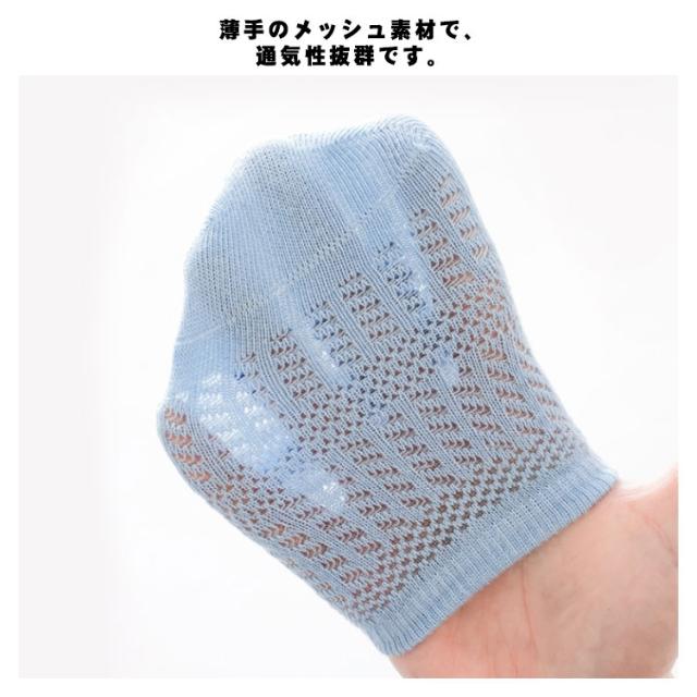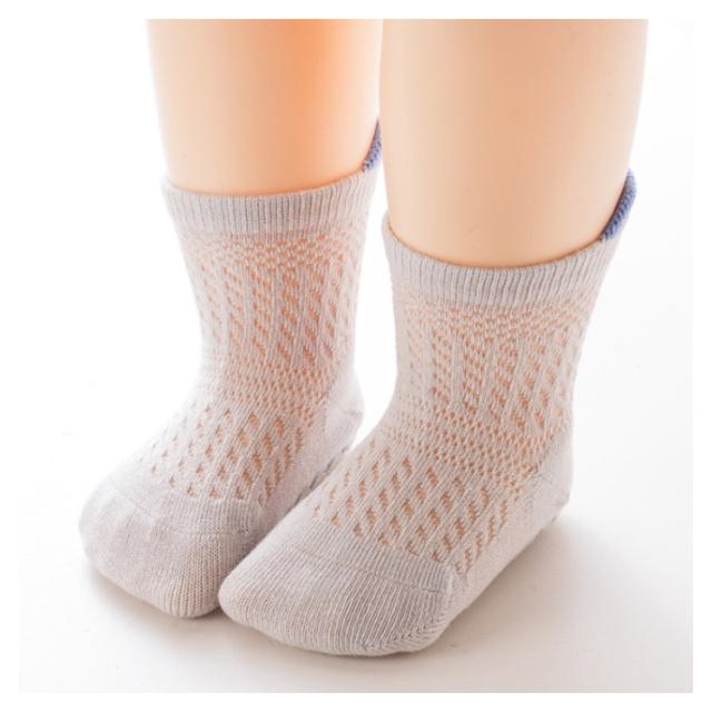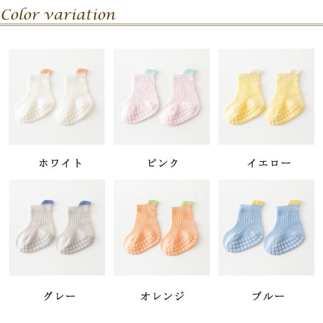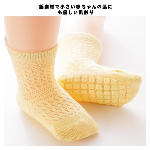 | 滑り止めが付いた赤ちゃん用メッシュソックス。 3足セット 薄手のメッシュ素材で、通気性抜群です。 綿素材で小さい赤ちゃんの肌にも優しい肌触り。 足裏に滑り止め付きで赤ちゃんの転倒をしっかり防ぎます | |