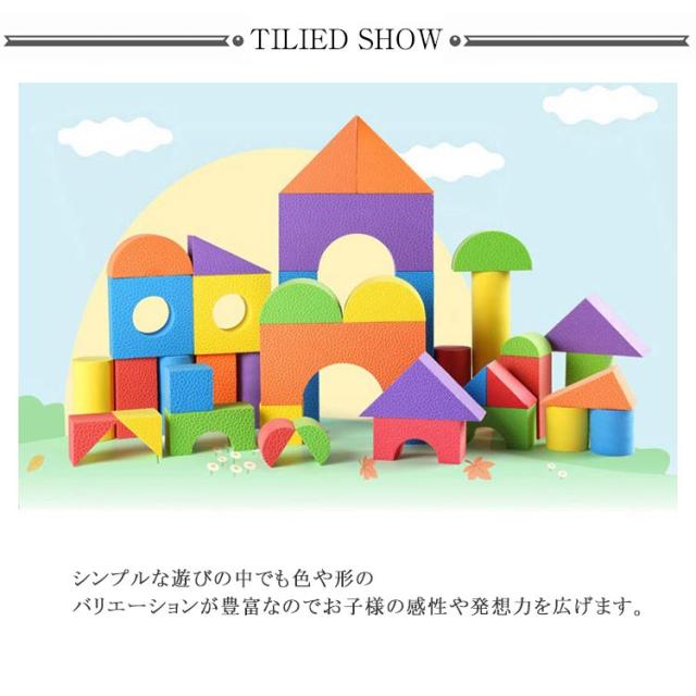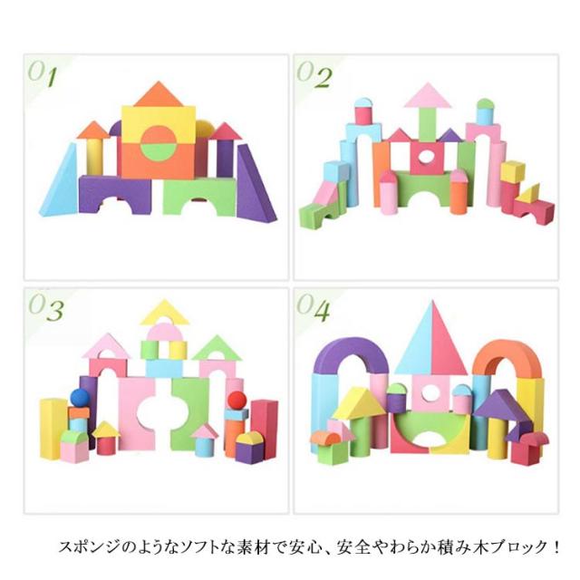 積み木 ソフト 52ピース カラフル ブロック おもちゃ 知育玩具 つみき EVA素材 遊び心 発想力 軽い 柔らかい 収納袋付き 赤ちゃん 男の子 女の子 誕生日 プレゼント ギフト カラフル