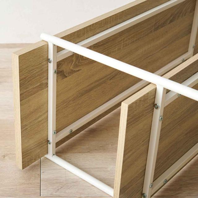 棚板の裏面に補強を行い、一番上の棚板は25kgまで耐えられるしっかりとした設計となっております。
