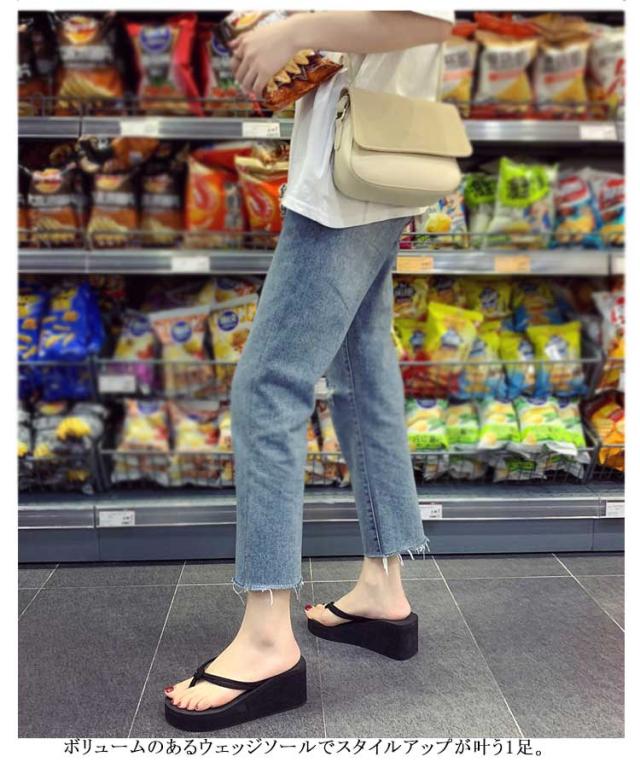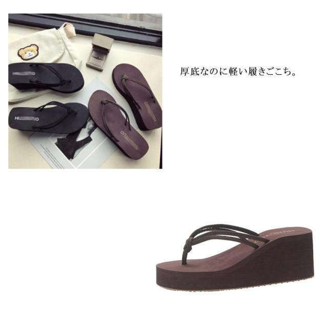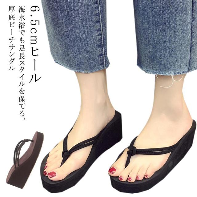 ビーチサンダル トングサンダル レディース 厚底 ウェッジソール ヒール高さ6.5cm 軽量 スリッパ 滑りにくい 歩きやすい 疲れにくい 痛くない ビーチ 海水浴 夏休み 海 プール タウンユース 旅行 夏