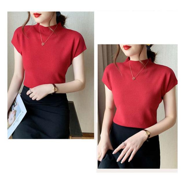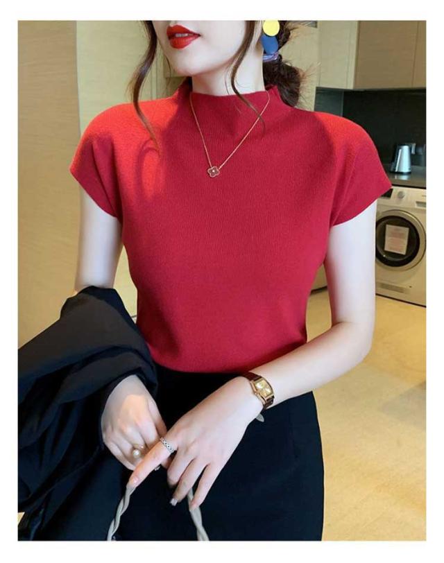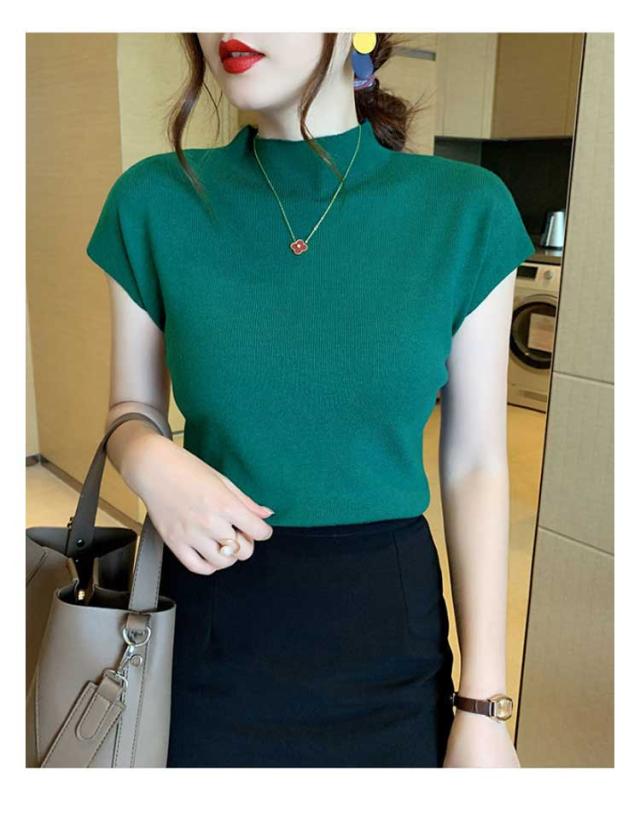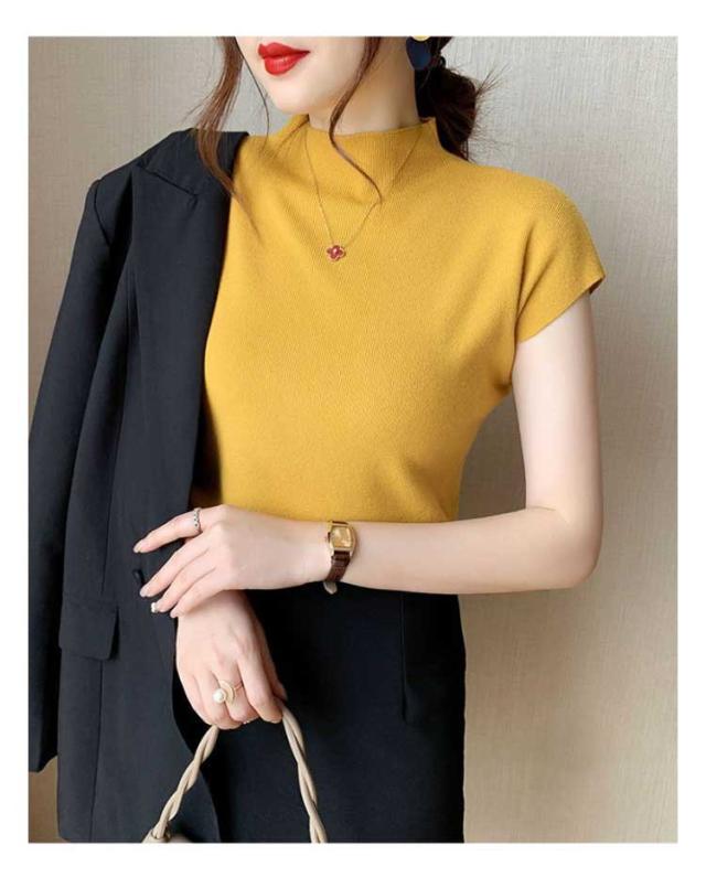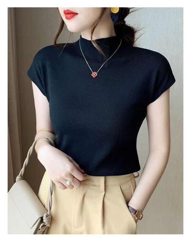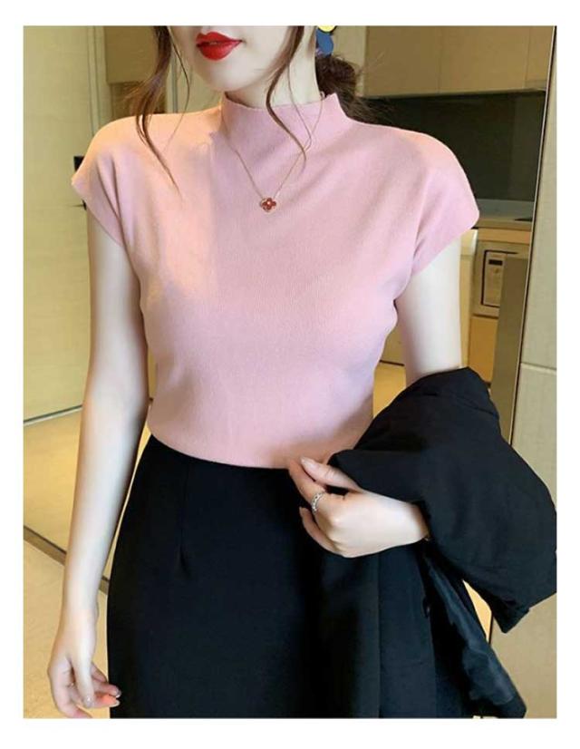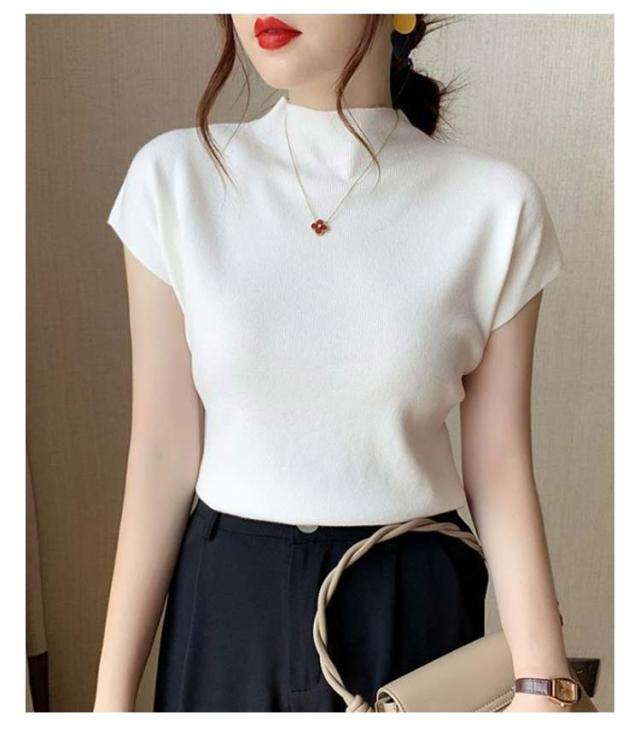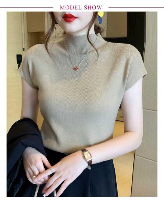 ニット トップス ハイネック ニット トップス サマーニット レディース 半袖 リブニット 通勤 ハイネック カットソー フレンチスリーブ フィット オフィスカジュアル 半袖ニット 薄手 無地 きれいめ 上品 大人 tシャツ 春夏 春 夏 春服 夏服 送料無料