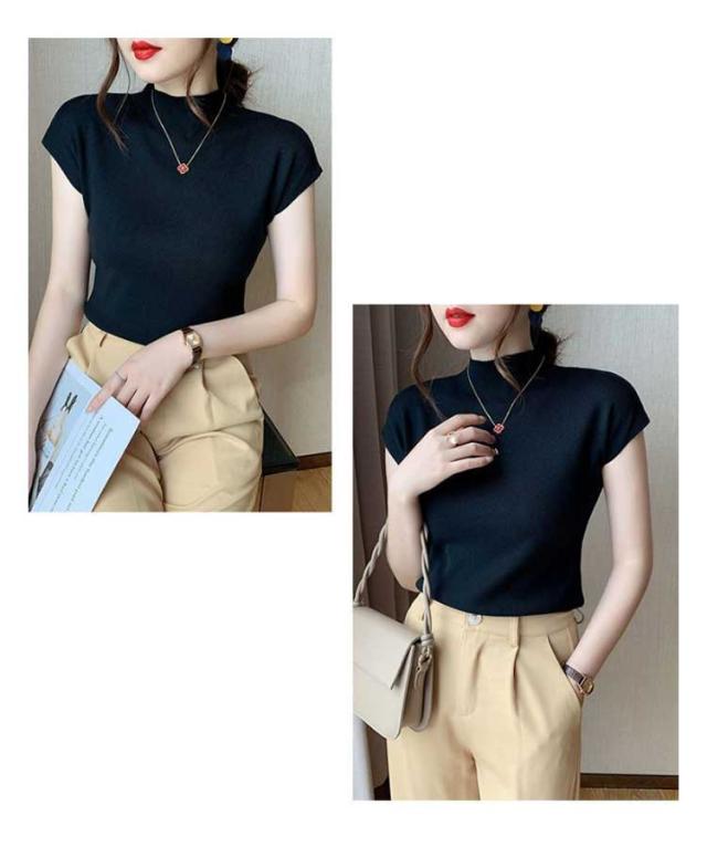 | これからの季節に重宝する半袖リブニットトップス。 ハイネックデザインの小顔効果で全体的にすっきり感を生み出します。 肩先をふんわり覆う長さで、少しだけ隠れる程度の長さなので、腕の肌見せ感が控えめ、大人っぽく上品に着こなせる。 全体が定番な無地デザイン上に、シンプルだけど女性のエレガントな雰囲気を演出する半袖ニットです!シンプルなデザインなので通勤服としても大活躍のサマーニットです。 伸縮性に優れている通気性良いニット素材で締め付け感を感じにくいのも嬉しいポイント。年齢(20代、30代、40代、50代)問わずお使いいただけます。 | |