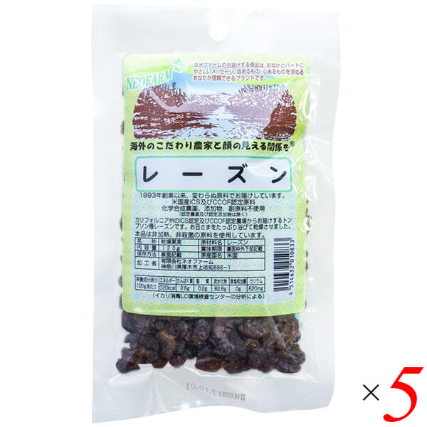 【お買い物ラリー!ポイント最大+5%】レーズン 120g 5個セット ネオファーム ドライフルーツ カリフォルニア 非加熱 送料無料