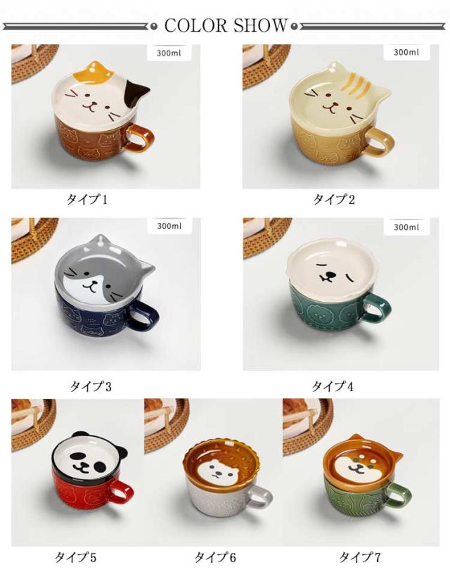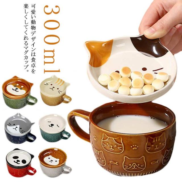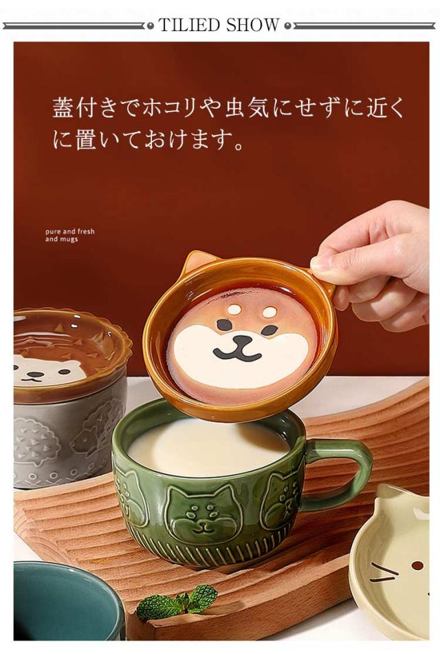 マグカップ フタ付き アニマル 300ml 食器 コーヒーカップ 陶磁器 電子レンジOK 食洗機対応 雑貨 可愛い おしゃれ 陶器 女性 子供 誕生日 プレゼント 送料無料