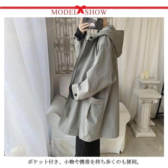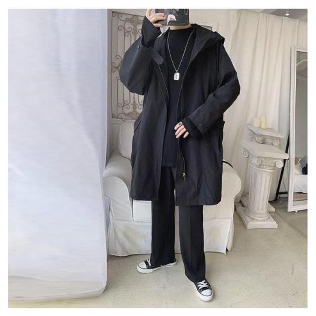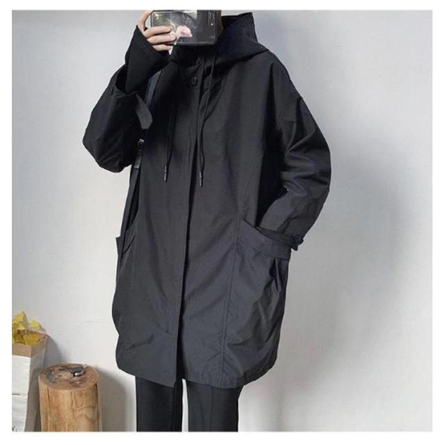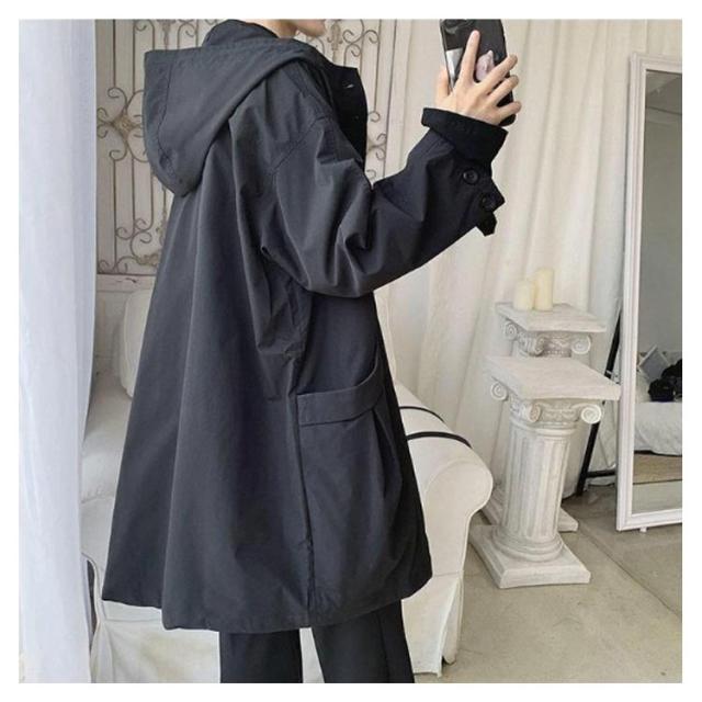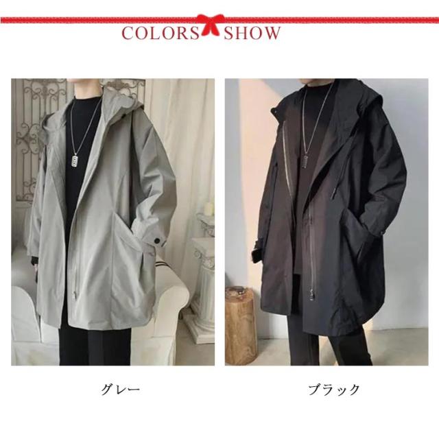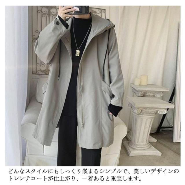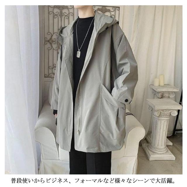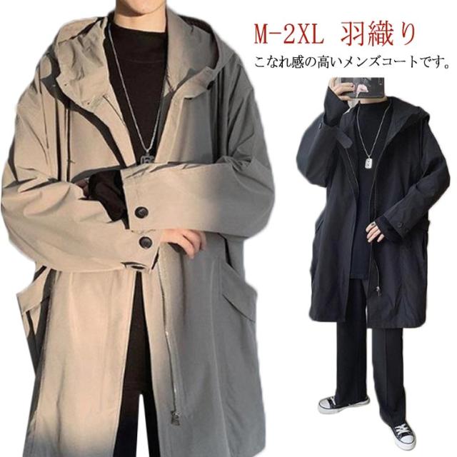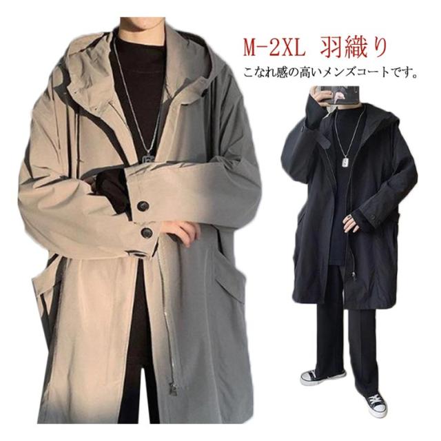 スプリングコート メンズ トレンチコート 長袖 アウター 春 秋 フード付き 羽織り ゆったり 大きいサイズ 通勤 ビジネス トレンチ ロングコート 体型カバー カジュアル おしゃれ コート 黒 ブラック 送料無料