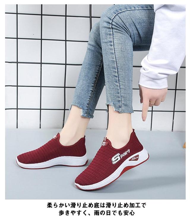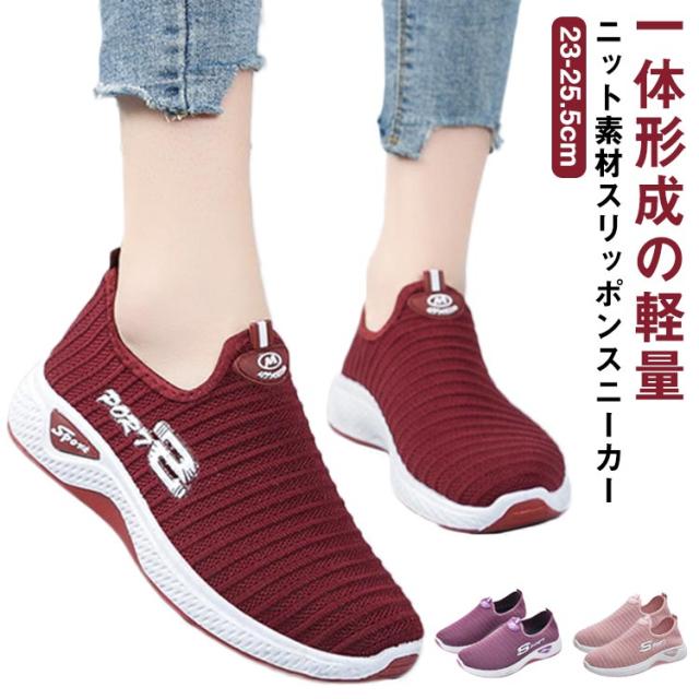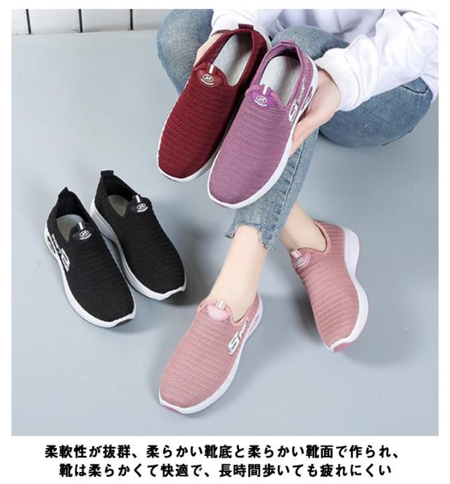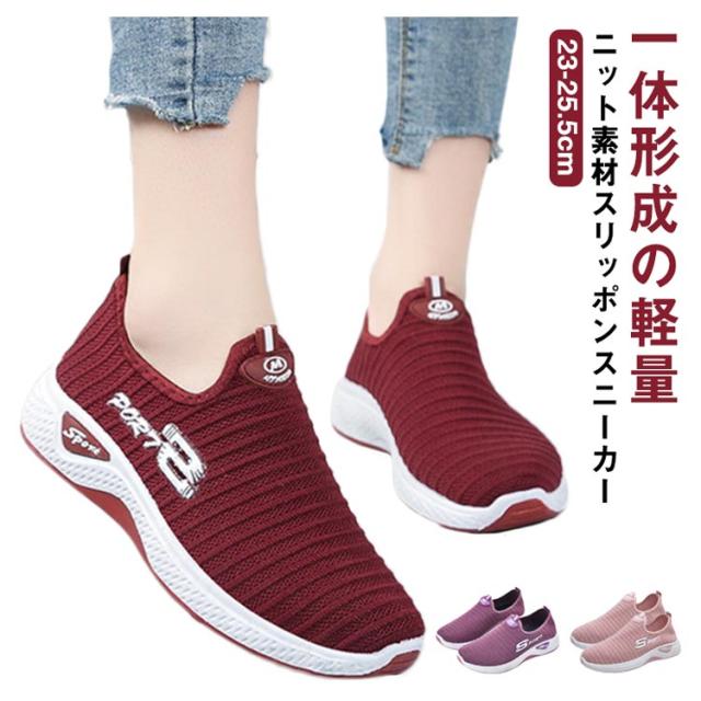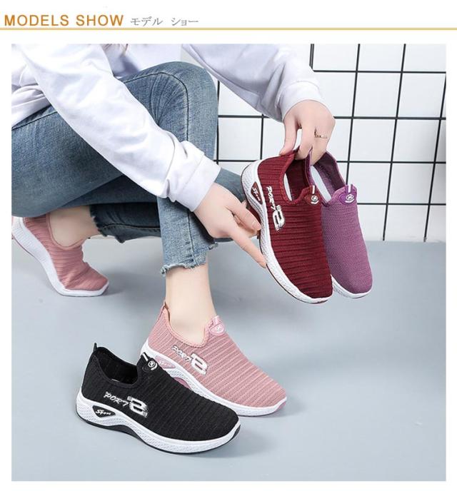 超軽量 フライ ニット スリッポン スニーカー 靴 レディース スニーカー 伸縮 軽い 軽量 通気 厚底 メッシュ 紐なし ヒモなし 履きやすい 歩きやすい 疲れない レディース シューズ 靴 カジュアル 夏 春夏 秋