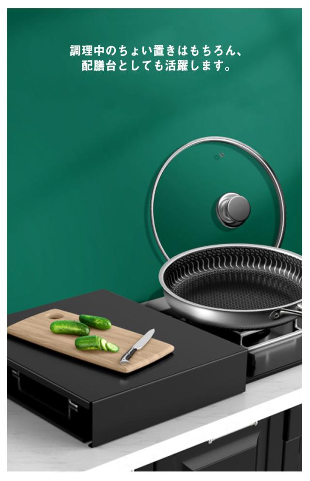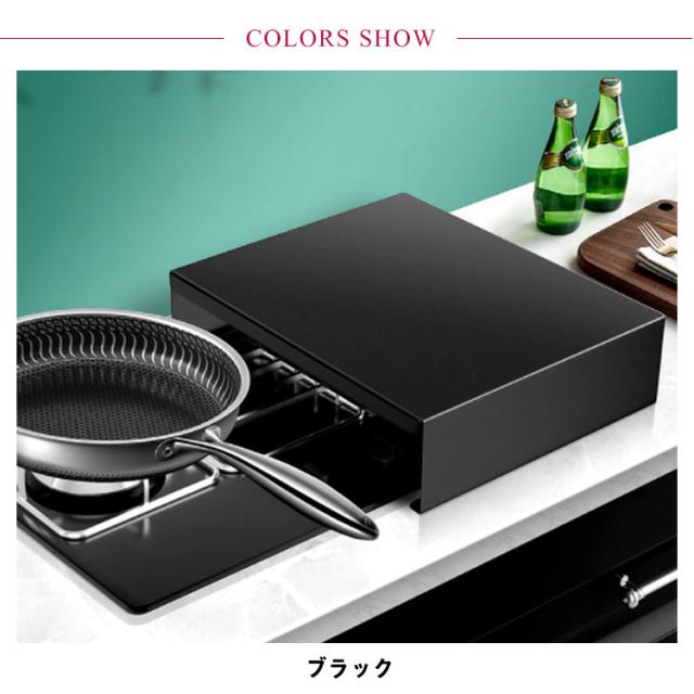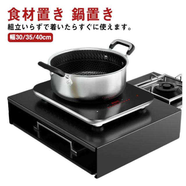 IHコンロカバー キッチン作業台 幅30/35/40cm ガスコンロカバー ステンレス ミニ作業台 ガスレンジカバー コンロ カバー 油はねガード 食材置き 鍋置き 調理スペース ガスコンロ対応 シンプル 丈夫 厚さ1mm 洗える キッチン収納 目隠し 汚れ防止 ブラック