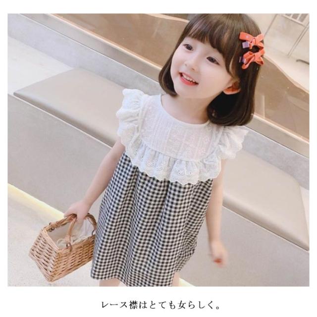 子供服 キッズ服 女の子 ワンピース ギンガムチェック 綿 半袖 レース襟 フリル コットン ベビーワンピース かわいい おしゃれ プレゼント バースデー 【送料無料】着回し カジュアル 可愛い お出かけ 通園 通学 ワンピース 90 100 110 120 130 140 結婚式 発表会 女児