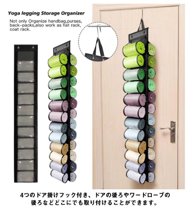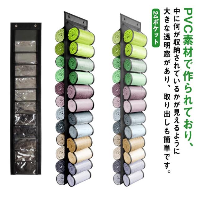 ウォールポケット タオル 24ポケット 吊り下げ収納 ドア掛け収納 クローゼット 収納 タオル収納 ヨガタオル 収納 クローゼット内 収納 吊り下げラック タオル収納 ハンガー 収納 おしゃれ 省スペース 壁掛け収納 透明 クリア フック付き
