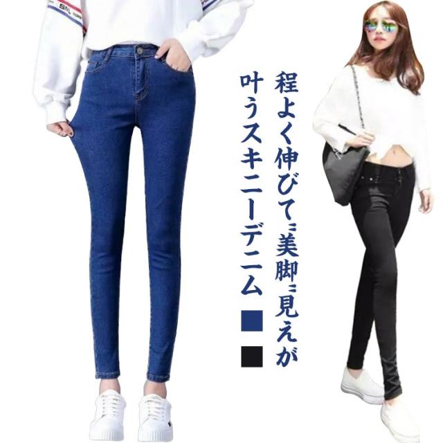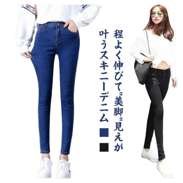 スキニー デニム パンツ ストレッチ レディース ボトムス ジーパン フィット デニムパンツ ジーンズ ハイウエスト ロングパンツ スキニーパンツ 美脚 細身 大きいサイズ おしゃれ 9分丈 ボトムス 送料無料