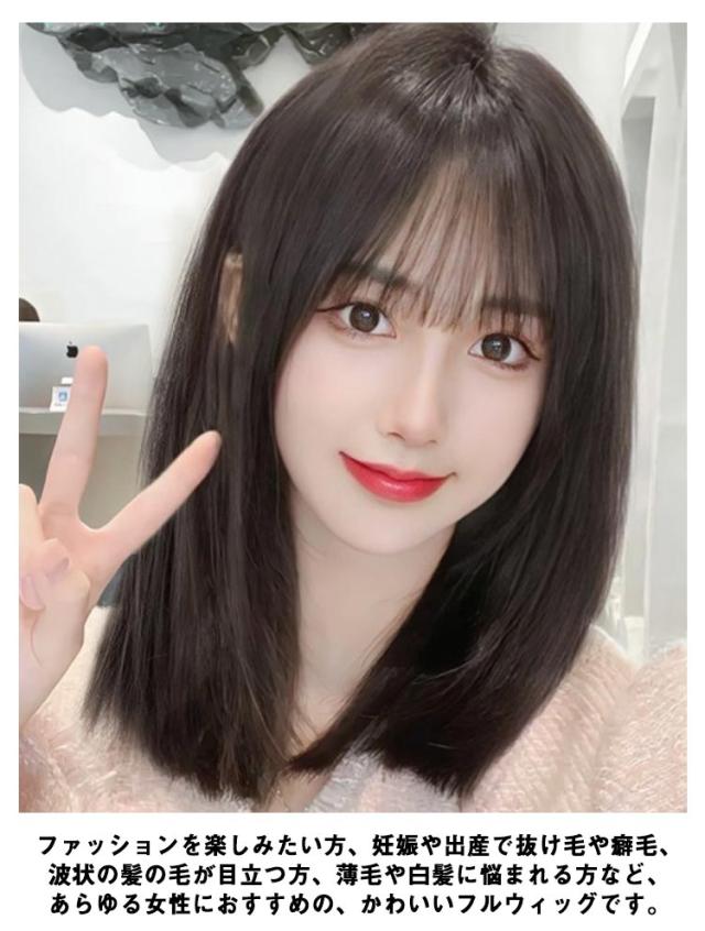 | しかも品質がよく低価格の超お買い得ウィッグ!! 小顔効果もばっちり! みんなが憧れるナチュラルミディ! ファッションを楽しみたい方、妊娠や出産で抜け毛や癖毛、波状の髪の毛が目立つ方、薄毛や白髪に悩まれる方など、あらゆる女性におすすめの、かわいいフルウィッグです。 重すぎない絶妙な薄さの前髪は左右どちらにも流せるから、その日の気分によって違った印象を楽しめる! ふかし加工が入っている前髪は、額にはりつかずふんわり!普段使いにもお出かけにも使える万能スタイル♪ | |
