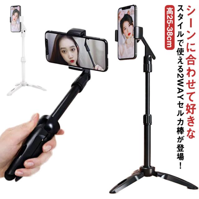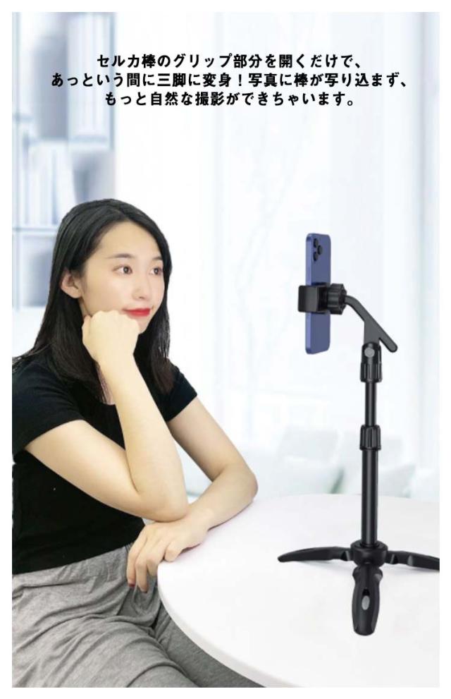 | シーンに合わせて好きなスタイルで使える2WAYセルカ棒が登場! 収納時はコンパクトに。スティックを伸ばせばぐーーんと最長38cmまで伸びる!自撮りや大人数での撮影も、誰かに撮ってもらったかのような自然な仕上がり♪ セルカ棒のグリップ部分を開くだけで、あっという間に三脚に変身!写真に棒が写り込まず、もっと自然な撮影ができちゃいます。 自撮りだけでなくスマホを固定できるので集合写真・記念写真・動画撮影・配信・タイムラプスなどなど…様々なシーンでご利用いただけます! | |