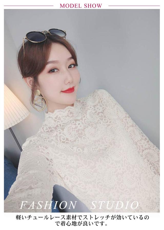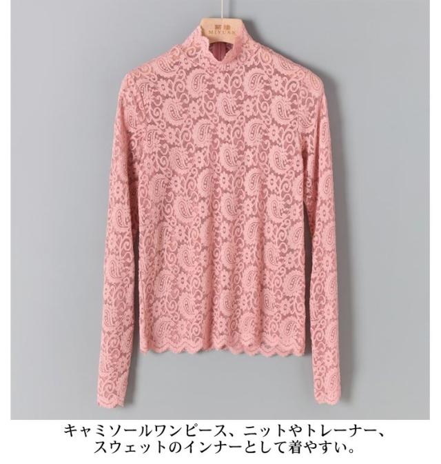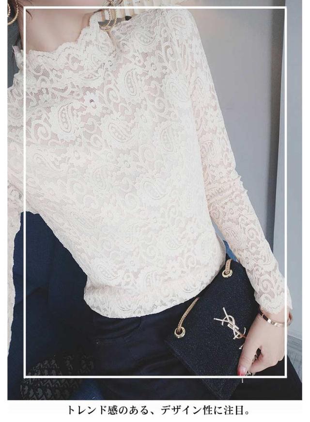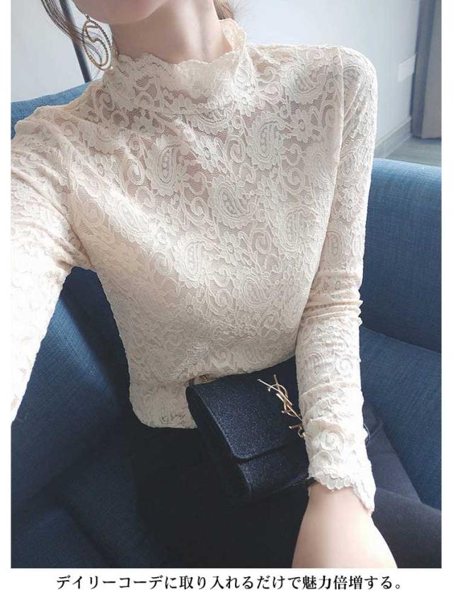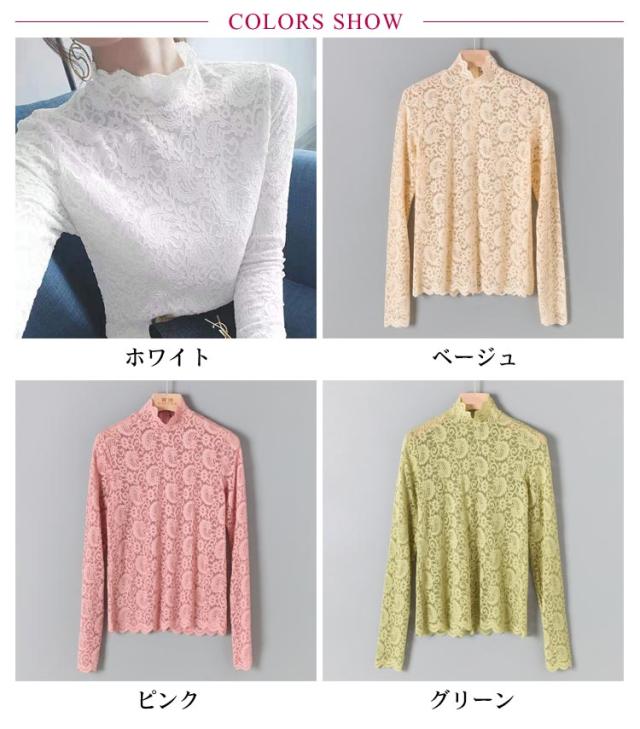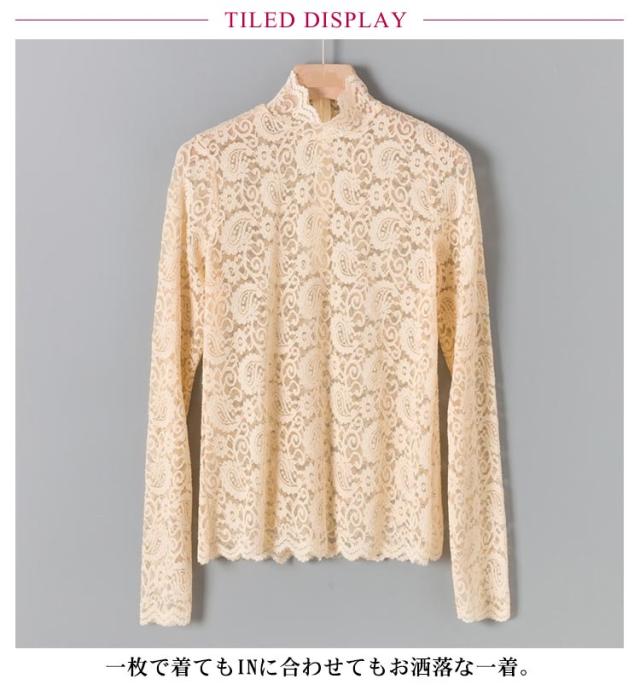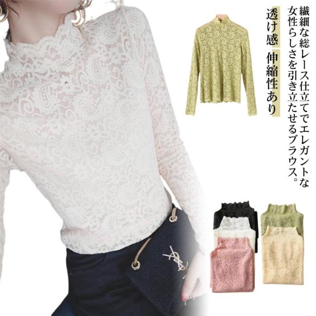 レース トップス 長袖 レース ブラウス 総レース 春 秋 シアートップス ハイネック 透け感 シースルー トップス 花柄 レディース インナー 薄手 韓国ファッション 伸縮性あり 柔らかい レイヤード 重ね着 きれい おしゃれ かわいい 春夏 秋冬 送料無料