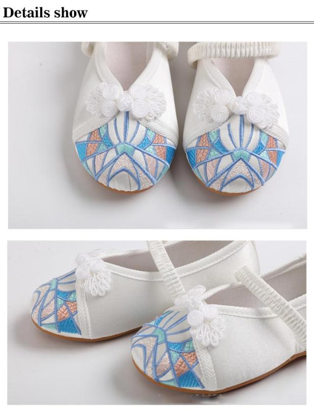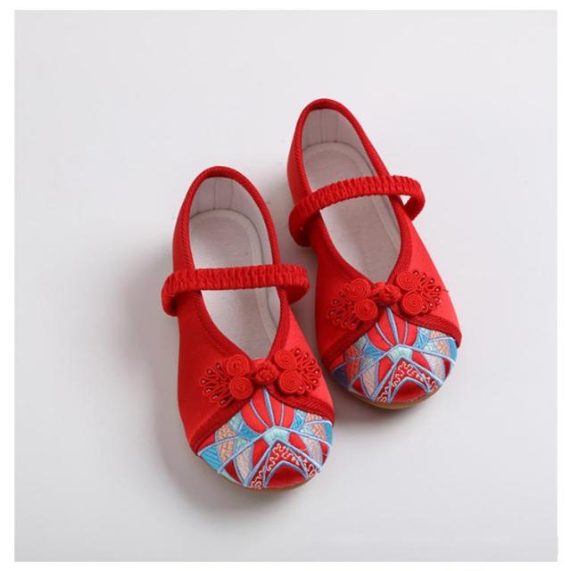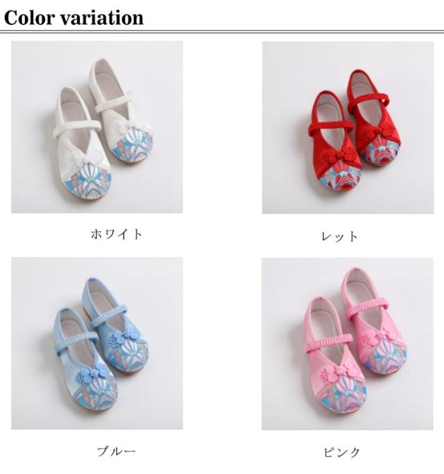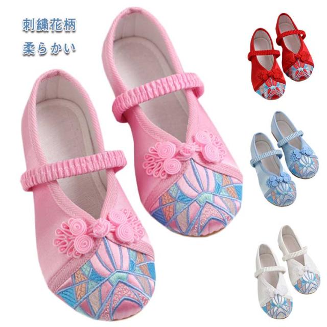 子供靴 女の子 パンプス ストラップ チャイナ靴 ダンスシューズ コスプレ用シューズ キッズ子供〜ジュニア用 布靴 バレエシューズ 刺繍花柄 カジュアルシューズ 柔らかい 履きやすい 歩きやすい