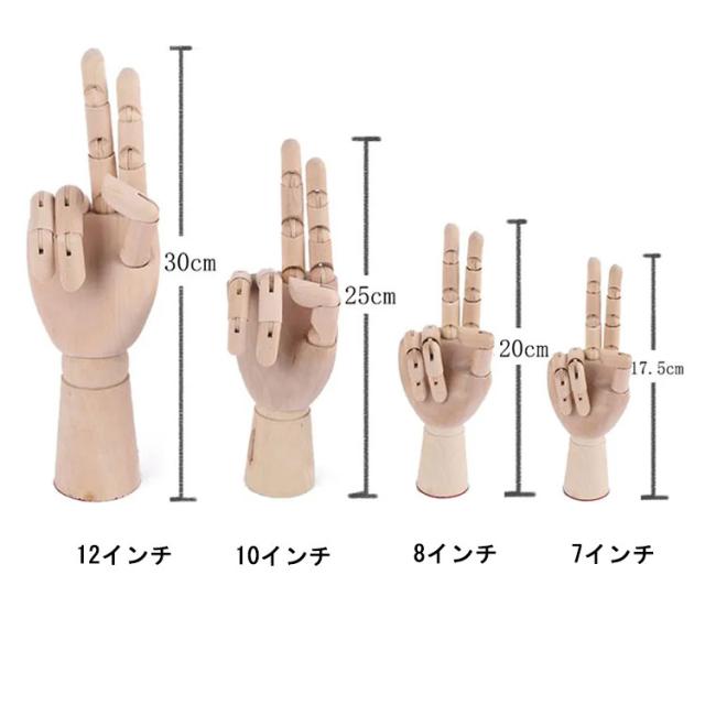 ハンドマネキン デッサン用 木製 ハンドモデル 関節可動 両手 左右 デッサン 手首 指 ハンド モデル 手 マネキン ディスプレイ 単点 右手 左手 7/8/10/12インチ 初心者 絵コンテ まんが画材 漫画 置物 ギフト プレゼント 送料無料