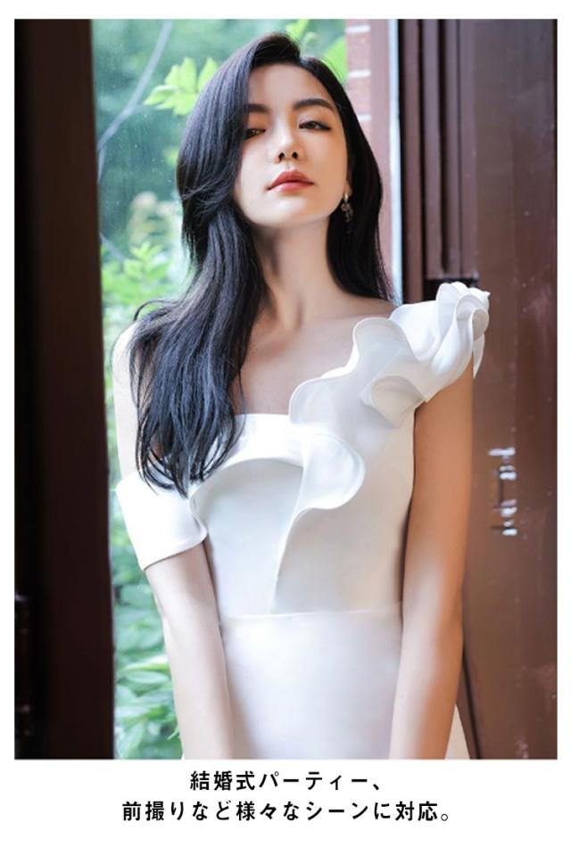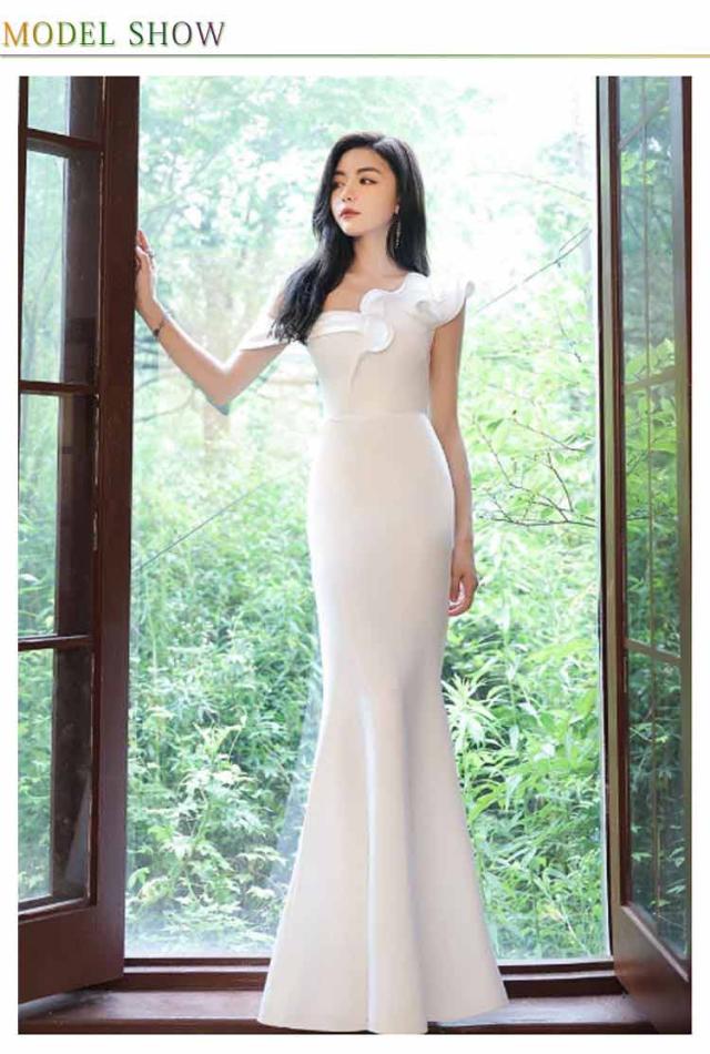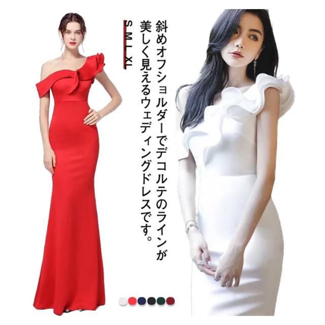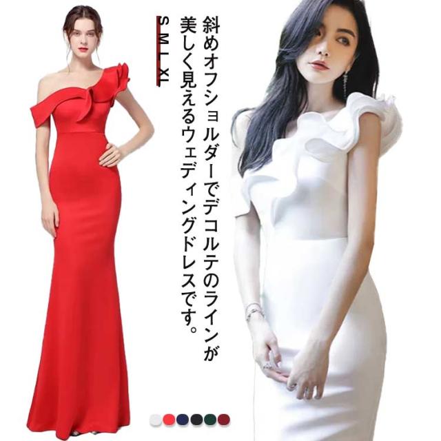 ウェディングドレス マーメイドライン ウェディング ドレス カラードレス パーティードレス 斜め オフショルダー お花嫁 ドレス ブライダル 優雅 礼服 ワンピース 結婚式 海外挙式 ロングドレス 前撮り 後撮り 披露宴 二次会 演奏会 発表会 ピアノ コンサート S M L XL