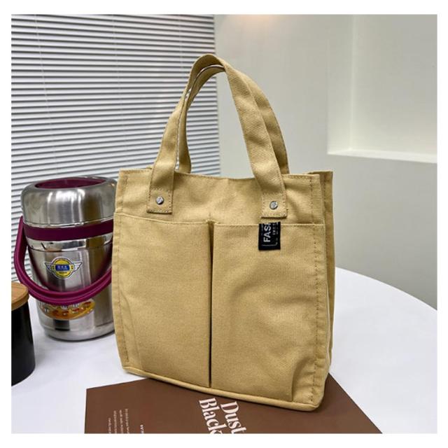 | 小さくて便利な、キャンバス素材のミニトートバッグ。 フロントには折りたたみ傘やペットボトルなどを収納するのに便利なオープンポケット付属。 内側にもファスナーポケットが1つ付いており、小物の整理にもオススメ。 さらにメインの収納スペースは仕切りなどが無く、広くご使用いただけるのも使いやすいポイントです。 開口部はマグネット式で、中身が見えないです。 型崩れしにくい厚めのキャンバス生地に加え、持ち手部分はさらに安定感のある厚めの生地を重ねて持ちやすく仕上げました。 必要な物をサッと取り出しでき、お散歩にもぴったり。 ちょっとしたお出かけ、お散歩、通勤・通学の際のサブバッグやランチトートにも、サッと持てる手軽さが魅力です。 | |