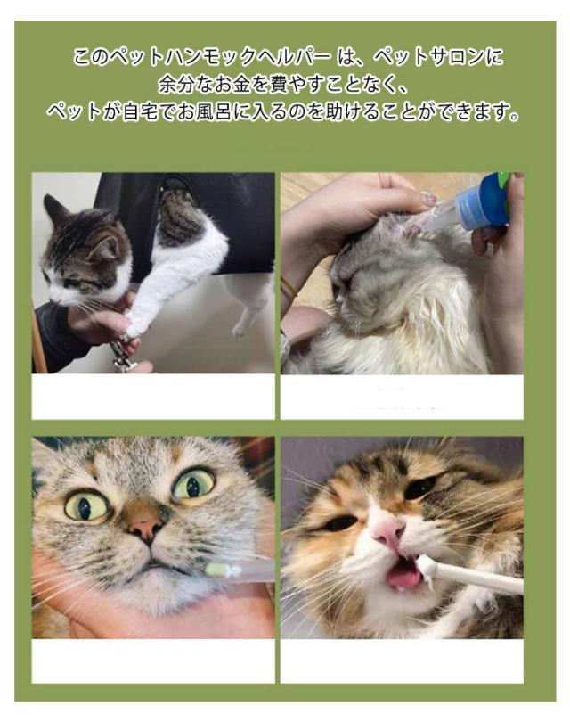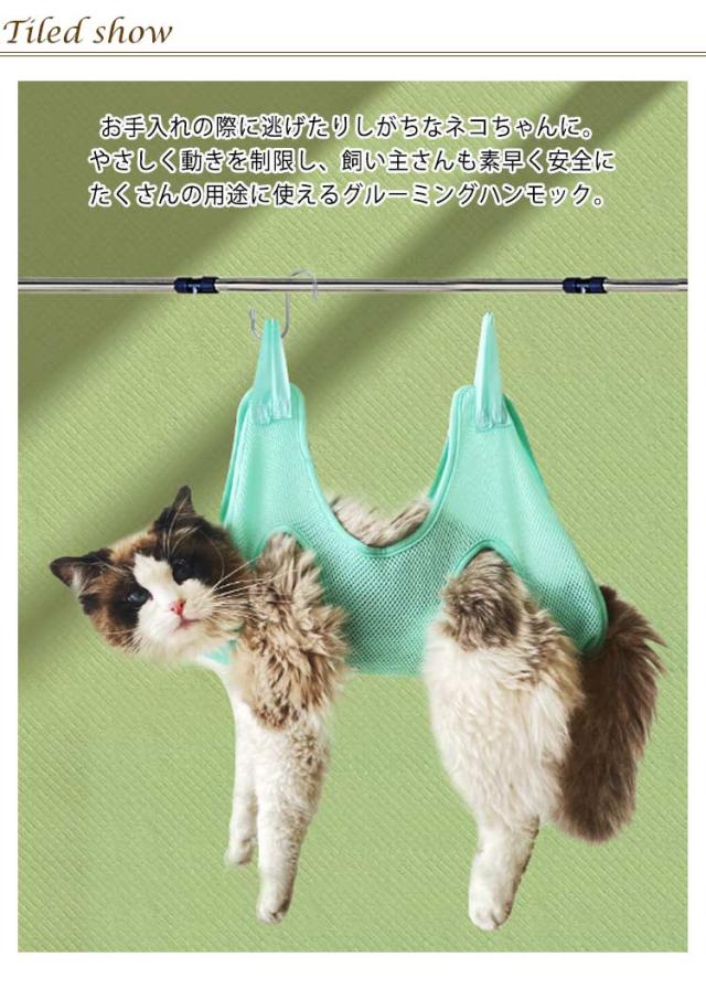| ペットのトリミング/お風呂ドライヤー/爪切り/耳掃除/健康チェックなどに! お手入れの際に逃げたりしがちなネコちゃんに。 やさしく動きを制限し、飼い主さんも素早く安全に たくさんの用途に使えるグルーミングハンモック。 S字フック付きだから届いてすぐに使える 脚を通しフックを頑丈なポールにひっかけるだけ! 高品質メッシュ素材で作られています、肌に触れるととても柔らかく快適です、繰り返し洗濯しても、生地が色あせたり、変形したり、固まったりすることはありません。 犬/猫の足を穴に入れ、包み込み、Sフックを使って吊るすだけです。 このペットハンモックヘルパー は、ペットサロンに余分なお金を費やすことなく、ペットが自宅でお風呂に入るのを助けることができます。 | |