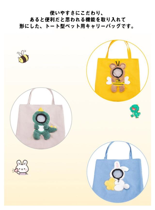 トートキャリーバッグ ペット キャリーバッグ 犬 猫 ペットキャリーバッグ トートバッグ 顔出し 蜜蜂型 恐竜型 兎型 小型犬用 飛び出し防止 ショルダーバッグ 通気性 ペットキャンバスバッグ 大きいサイズ お出かけ 散歩 ギフト プレゼント 送料無料
