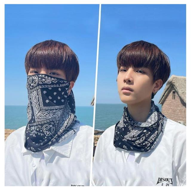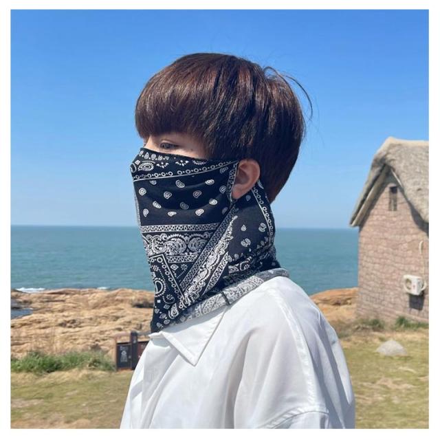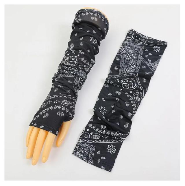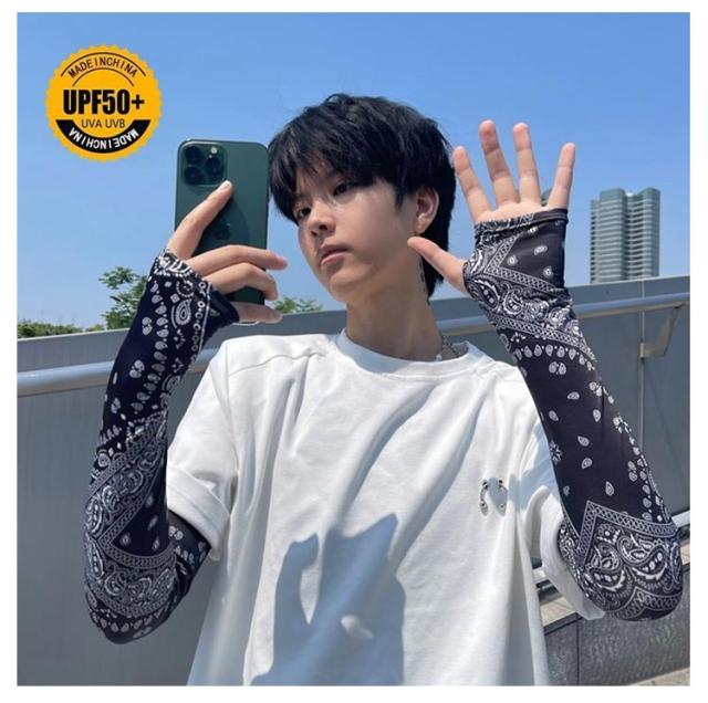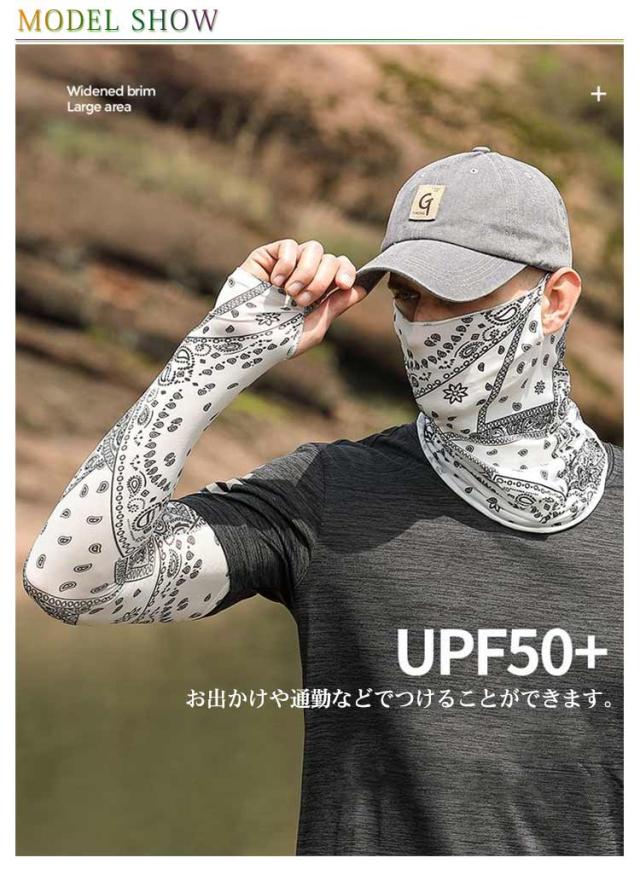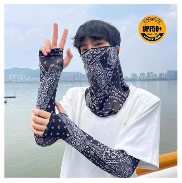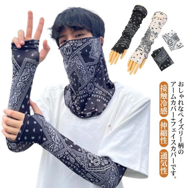 アームカバー+フェイスカバーの2点セット!アームカバー UVカット 冷感 接触冷感 アイスシルク ペイズリー柄 伸縮性 通気性 涼しい おしゃれ 腕カバー ゴルフ スポーツ uv 紫外線 日焼け対策 メンズ レディース 通勤 通学