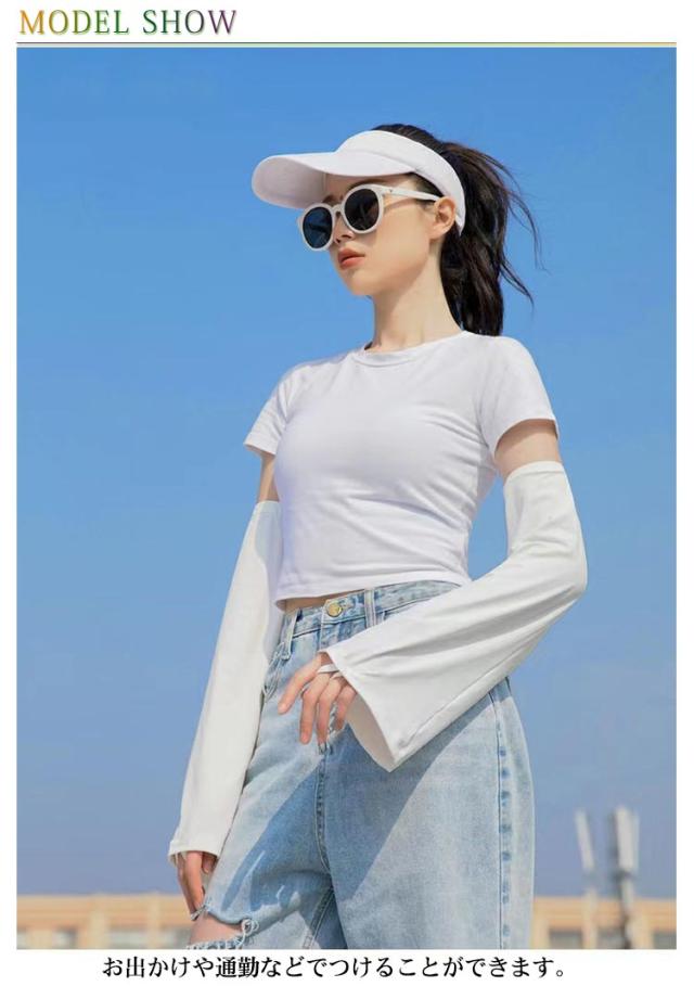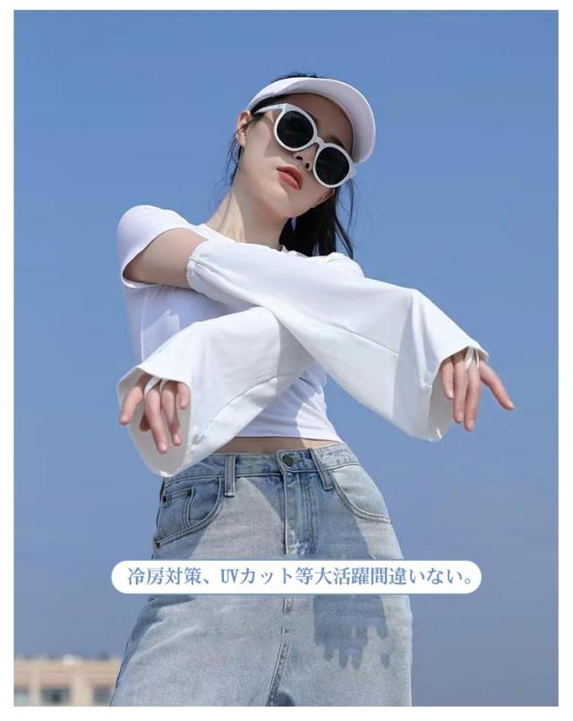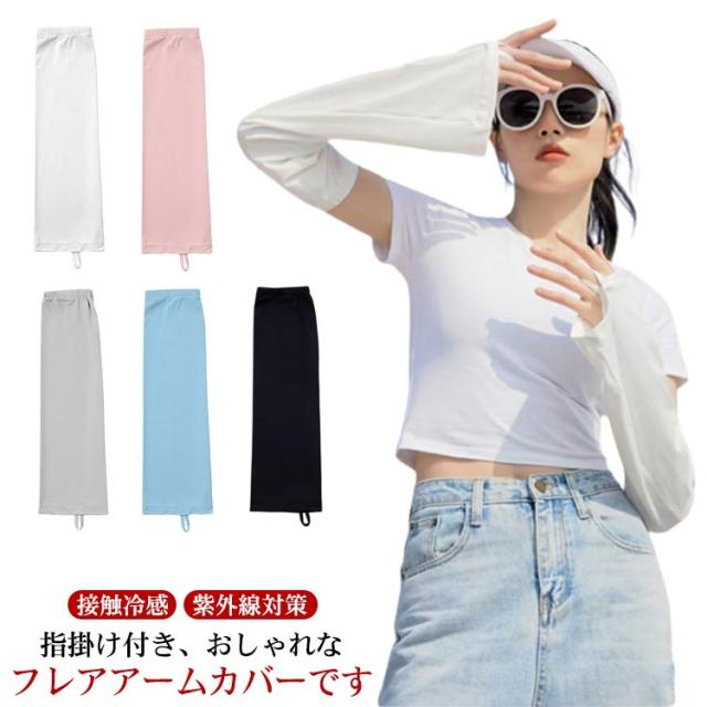 フレア アームカバー 指掛け レディース アームカバー フレア袖 接触冷感 ロングアームカバー かわいい UVカット UV対策 4枚入り 2ペア 紫外線対策 日焼け防止 冷房対策 ずれない アウトドア