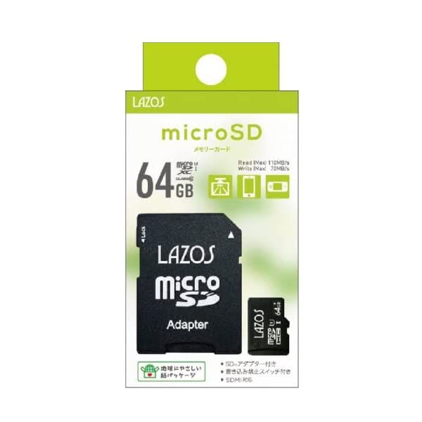 LAZOS microSDカード SDXC 64GB クラス10 UHS-I U3 ネコポス送料無料