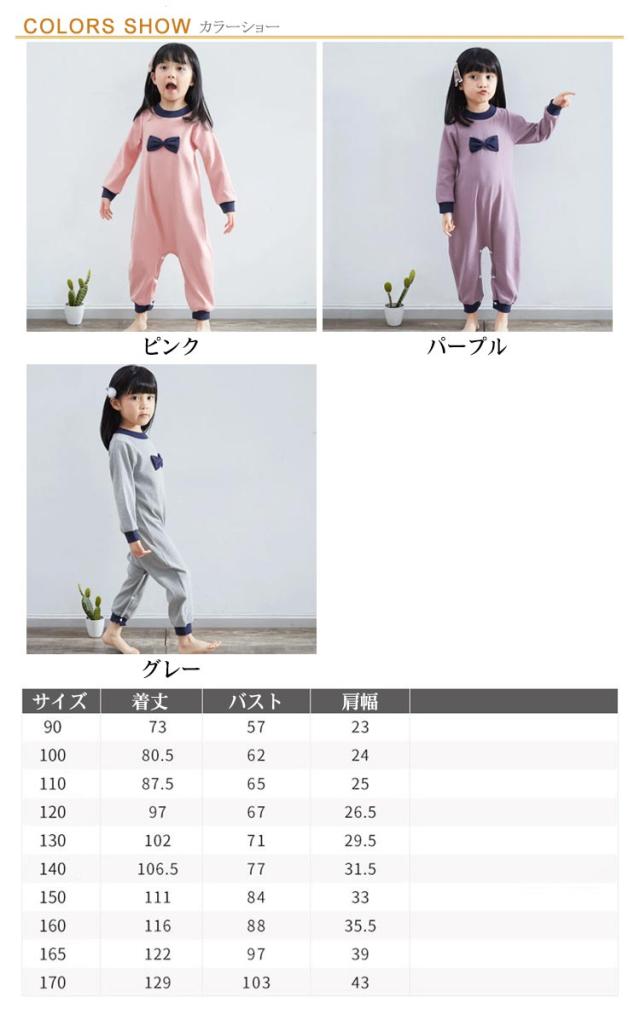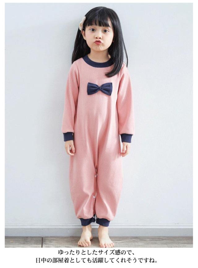 送料無料 女の子 パジャマ 90-160cm 長袖 ロンパース オールインワン オーバーオール 春秋 春服 秋服 フロントリボン 子供服 綿 スナップボタン 女児 ベビー ジュニア 寝間着 寝冷え防止 おしゃれ かわいい 春 秋 冬