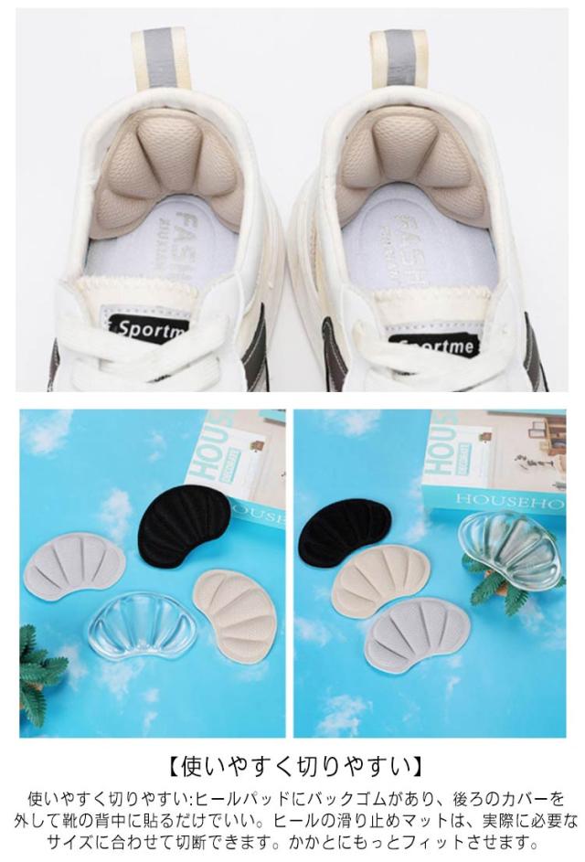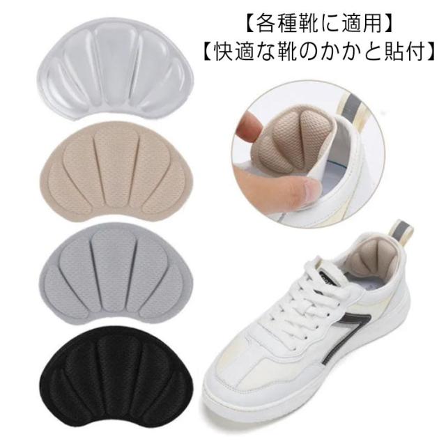 4ペア かかとパッド パカパカ防止 靴ずれ防止 滑り止め サイズ調整 革靴 シリコン スニーカー 靴擦れ防止 かかと サイズ調整 かかと修理 パッチ シューズ補修材 貼るだけで簡単 白 グレー 黒 透明 送料無料
