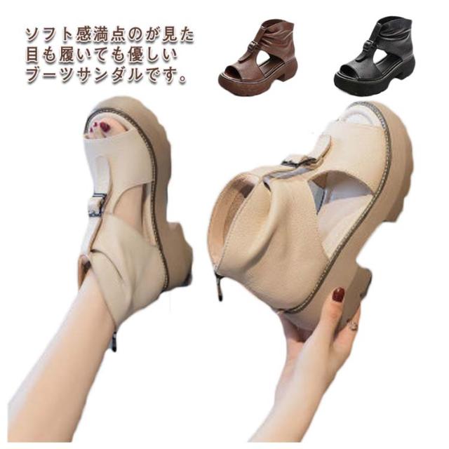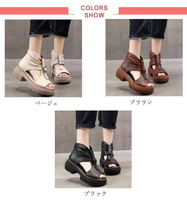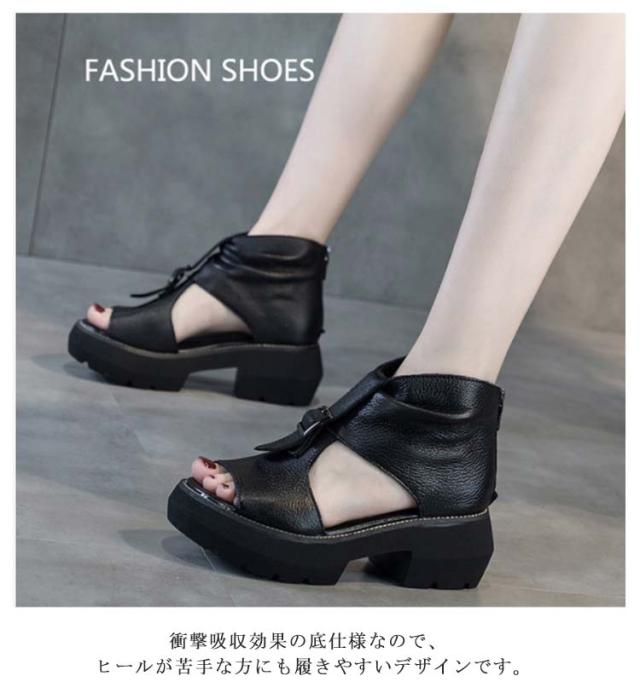 22.5cm〜25.0cm 厚底サンダル ブーツサンダル レディース 5.5cmヒール サマーブーツ ショートブーツ フラットシューズ 歩きやすい 袴 ブーツ 滑り止め 厚底シューズ コンフォート 靴 歩きやすい 大きいサイズ