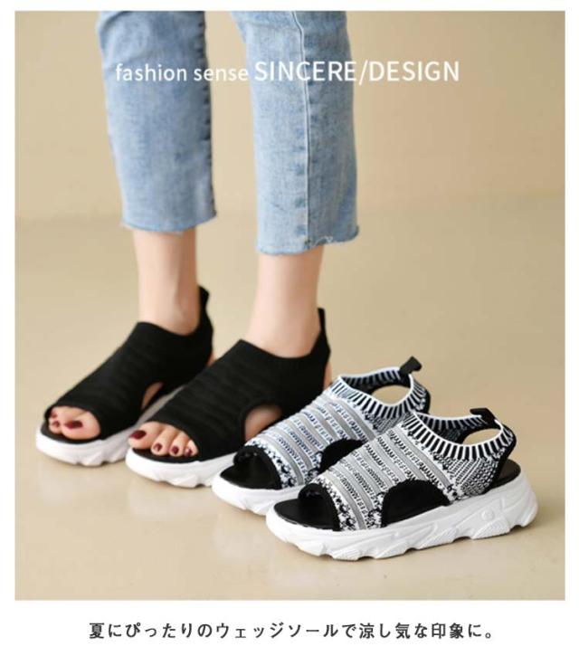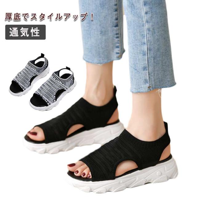 サンダル スポーツサンダル スポサン レディース 厚底 メッシュ ビーチサンダル ウェッジソール 軽い 通気性 美脚 オープントゥ バックストラップ シンプル お洒落 ママコーデ 涼しい ウォーキングシューズ 婦人靴