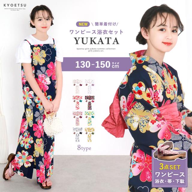 1人で簡単着付け 【 ワンピース浴衣 豪華3点セット 】 浴衣 子供 女の子 セパレート 二部式 浴衣セット 兵児帯 下駄 セパレート浴衣 ワンピース レトロ ガールズ 子ども くすみ yukata ゆかた セット ジュニア キッズ おしゃれ 可愛い 簡単 簡易 中学生 130 140 150(rg)