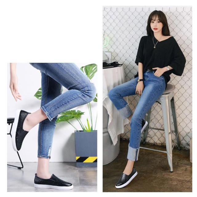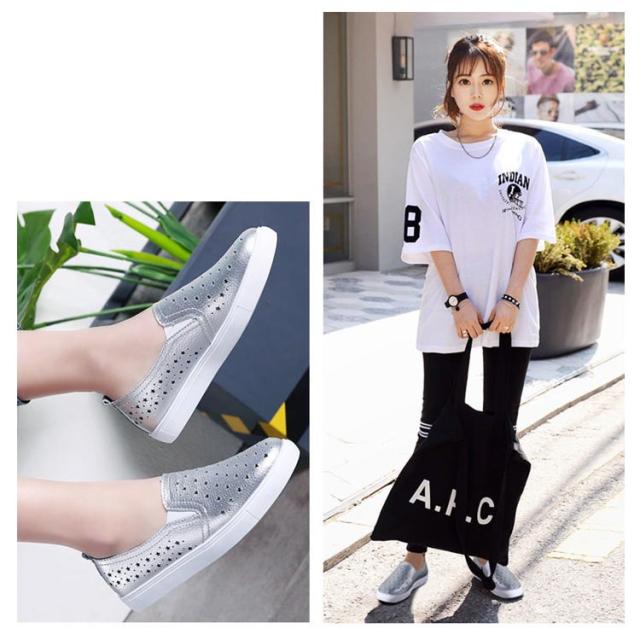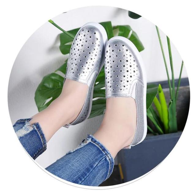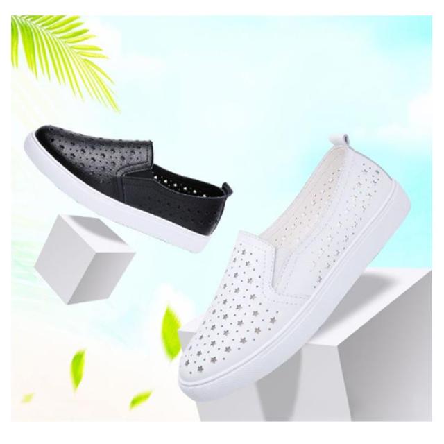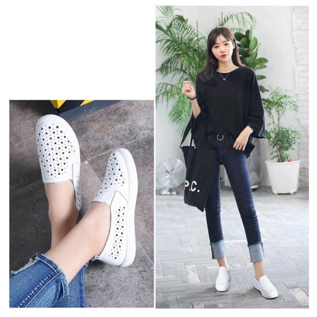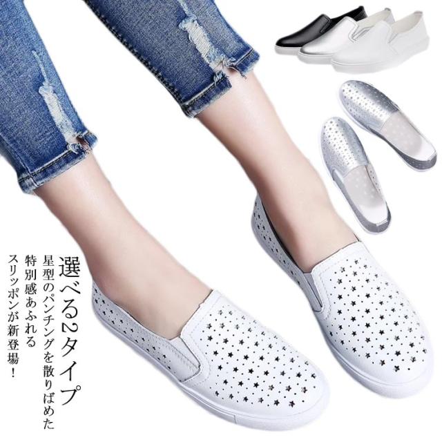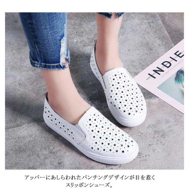 スリッポン スニーカー レディース 星柄 パンチング パンチングスリッポン 紐なし サイドゴア 履きやすい カジュアルシューズ おしゃれ 合皮 春 選べる2タイプ 全3色