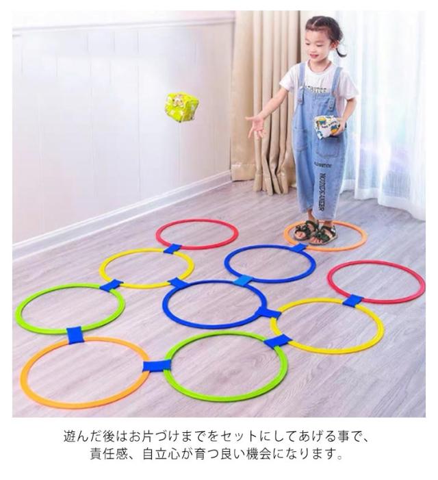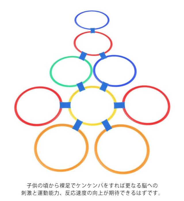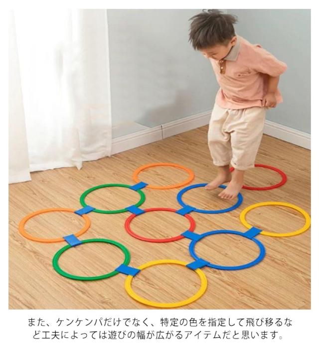 | ケンケンパ遊びなど、幼稚園、保育園の外遊びにしてもお使い頂けます。 子供たちが体を動かす機会が少なくなっている今こそ、昔ながらのケンパケンパ遊びは、 体と脳に良い刺激を与えてくれます。 遊んだ後はお片づけまでをセットにしてあげる事で、責任感、自立心が育つ良い機会になります。 また、ケンケンパだけでなく、特定の色を指定して飛び移るなど工夫によっては遊びの幅が広がるアイテムだと思います。 子供の頃から裸足でケンケンパをすれば更なる脳への刺激と運動能力、反応速度の向上が期待できるはずです。 | |