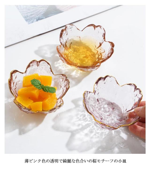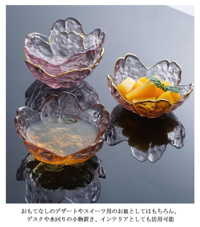 4個セット 桜 ガラス小鉢 硝子 お皿 小皿 セット 豆皿 食器 金縁 デザート ガラスボウル ガラス食器 業務用 かわいい 和食器 洋食器 飲食店 クリア 透明 キレイ さくら 花柄 四季 ピンク 花見 春 インスタ映え お祝い 卒業 入学 誕生日 ギフト プレゼント