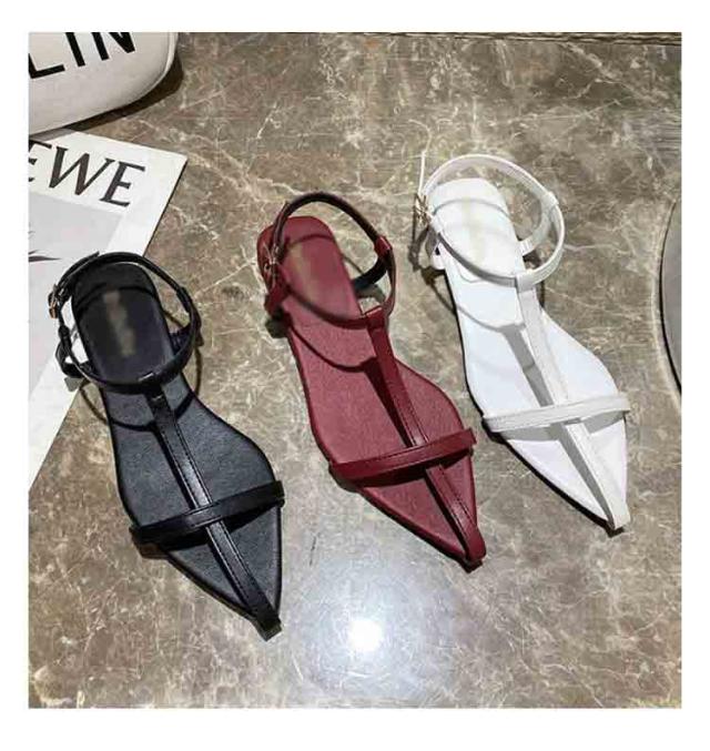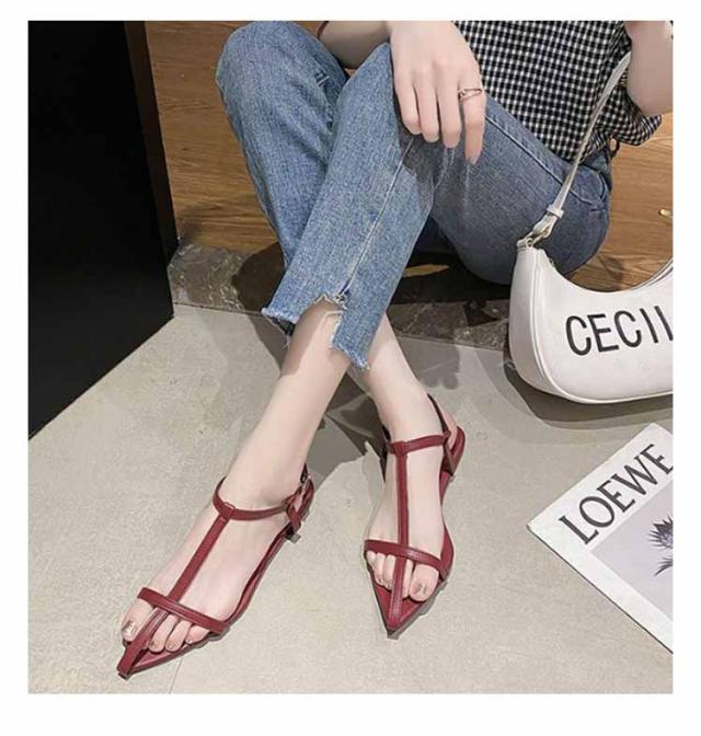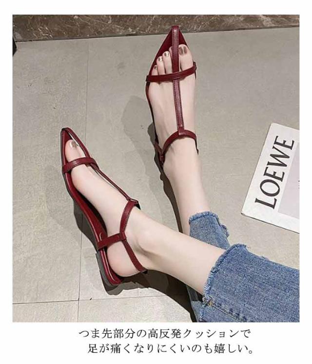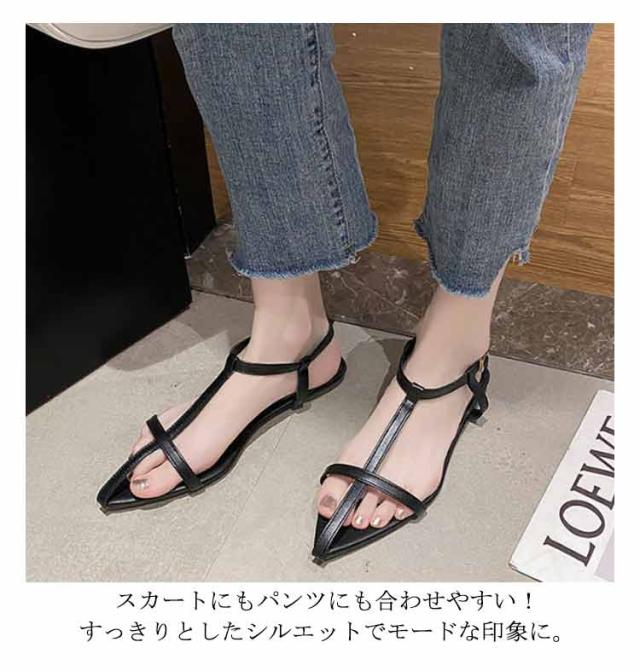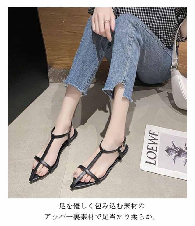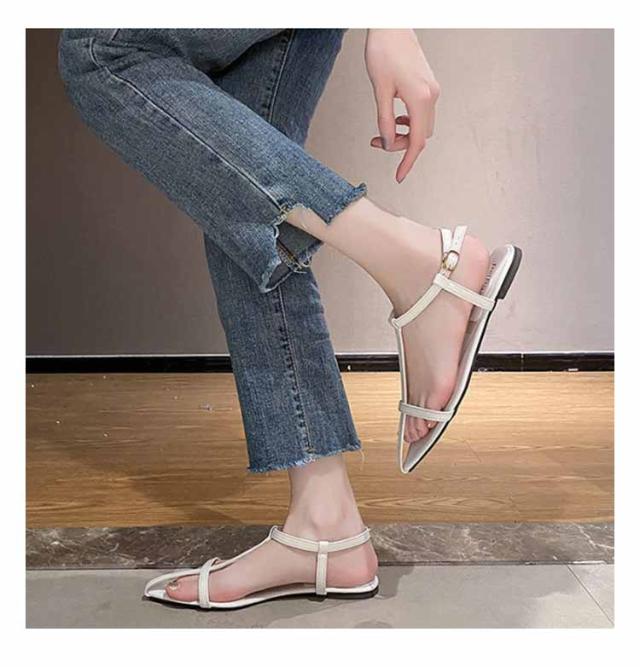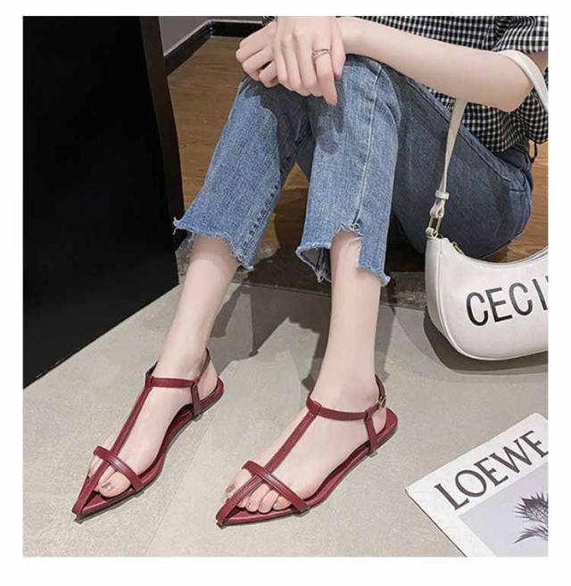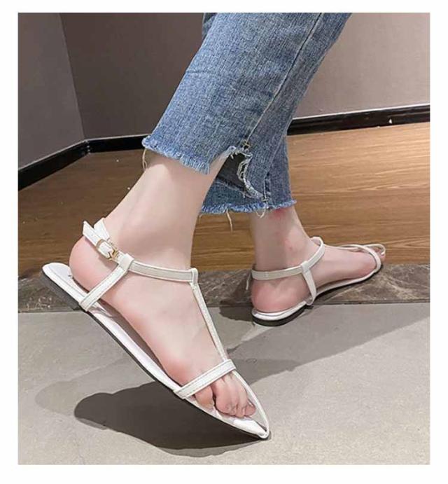 Tライン ストラップサンダル レディース ぺたんこ 細ストラップ 華奢 Tストラップ ポインテッドトゥ フラットソール ぺたんこ くつ シューズ 履きやすい 脱げない 高見え トラベル 旅行 リゾート ブラック ホワイト ワインレッド