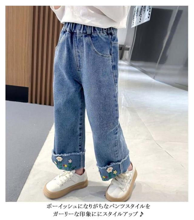 送料無料 女の子 デニムパンツ 子供 フレアパンツ 裾フレア パンツ デニム ジーパン パンツ キッズ デニム ジーンズ デニム ロングパンツ デニム パンツ ジーパン ボトムス 子供 ズボン 春服 秋服 冬服 90 100 110 120 130 140 150 cm